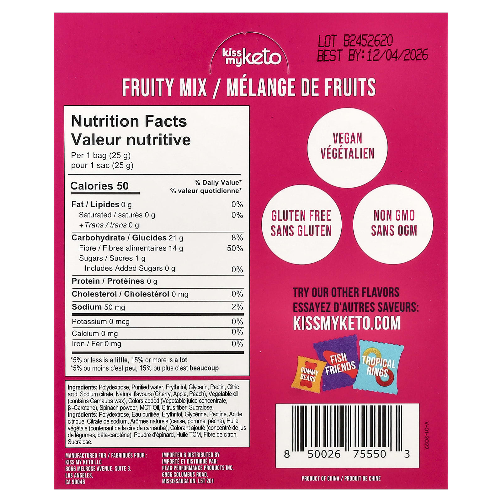 Kiss My Keto Doce de Goma Mistura de Frutas 8 Sacos 25 g (088 oz) Cada
