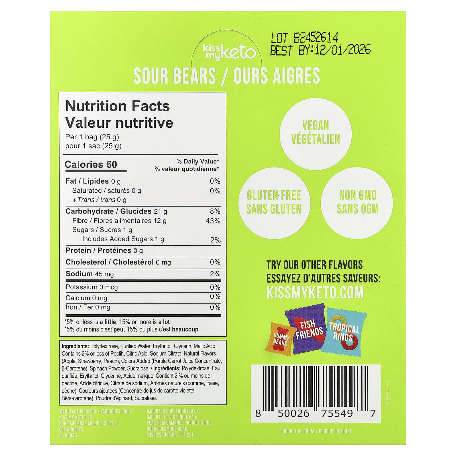 Kiss My Keto Gomas Doces Azedos 8 Sacos 25 g (088 oz) – Kiss My Keto Alimentos Chocolate e doces Doces Gomas e mastigáveis.