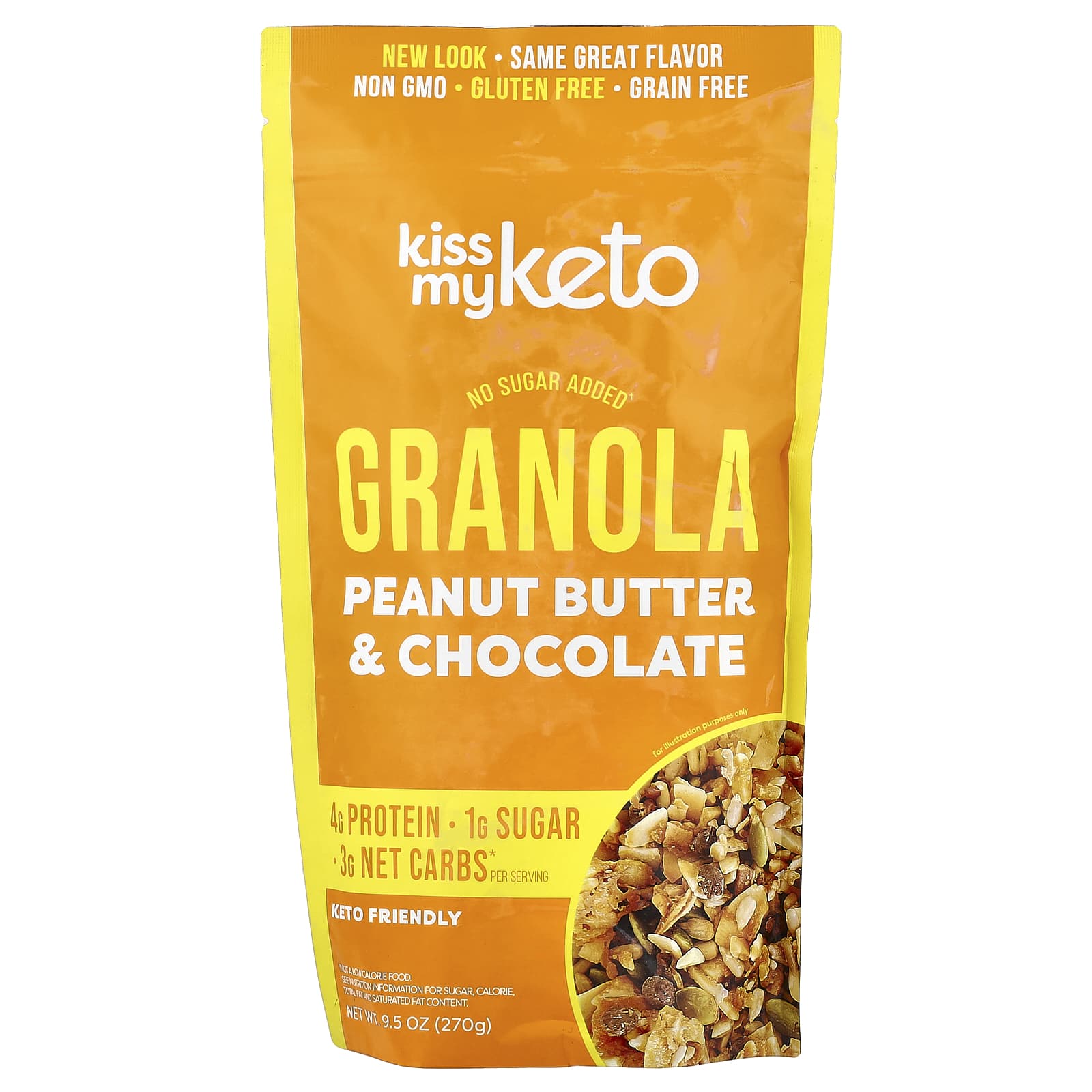 Kiss My Keto Granola Manteiga de Amendoim e Chocolate 270 g (95 oz) – Kiss My Keto Alimentos Cereais e alimentos para café da manhã Granola.