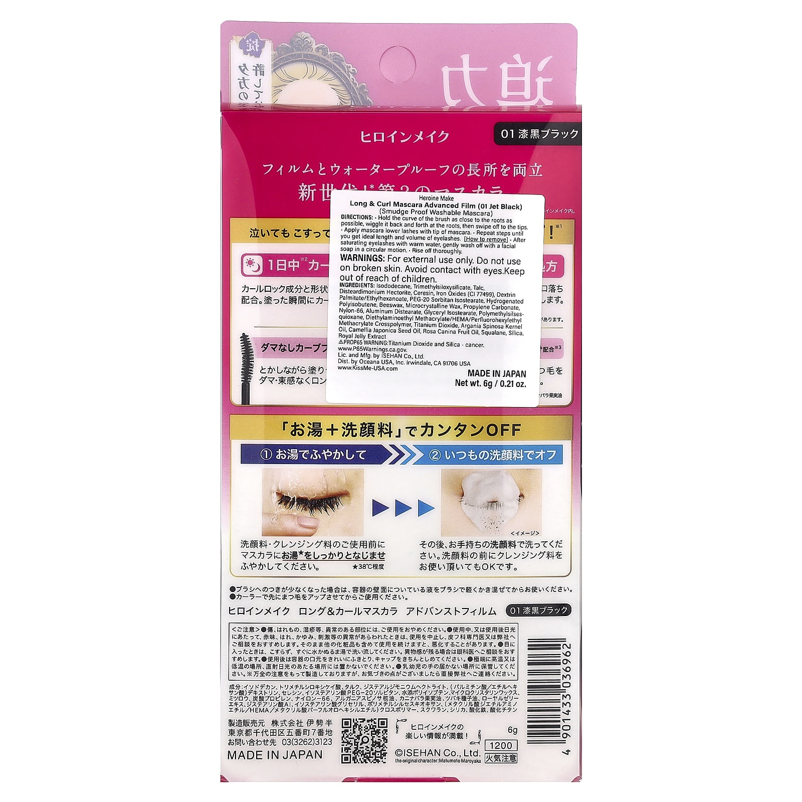 KissMe Heroine Make Máscara de Cílios Longo e Curvado Película Avançada 01 Jet Black 6 g (021 oz) – KissMe Beleza Maquiagem Olhos Máscara de Cílios.