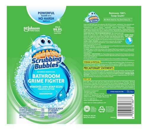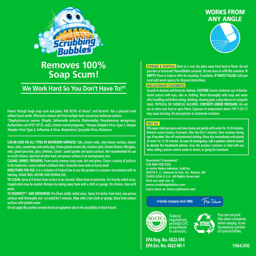 O Shower Foamer, da renomada marca Scrubbing Bubbles, é formulado especificamente para combater manchas de sabão, resíduos de água dura e bolor, deixando seu chuveiro e superfícies do banheiro brilhando. Sua fórmula de espuma ativa facilita a remoção de sujeira e acúmulo, proporcionando uma limpeza eficaz e rápida.