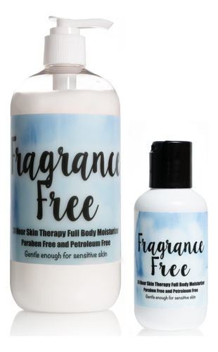 Loção terapêutica para pele 24 horas da The Lotion Company, sem perfume, sem perfume, sem fragrância (gratuita e transparente), pele sensível, kit combinado — HIDRATANTE DE CORPO INTEIRO: hidrata, hidrata e nutre a pele para um tratamento de pele luxuoso e calmante durante todo o dia — LIVRE E TRANSPARENTE: Sem fragrâncias, parabenos, petróleo, cores e corantes artificiais — FÓRMULA SUAVE: Não irrita a pele extremamente seca ou sensível – Alívio calmante: alivia imediatamente o desconforto da pele seca, com coceira, escamosa, rachada ou queimada pelo sol, psoríase e eczema em qualquer parte do corpo – QUIMIOTERAPIA E RADIAÇÃO PARA A PELE: A quimioterapia afeta seu corpo, especialmente sua pele. Se você estiver enfrentando um problema de pele específico, como erupção cutânea no rosto ou queimadura por radiação, sabe-se que o Free & Clear ajuda.