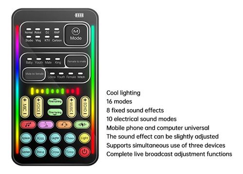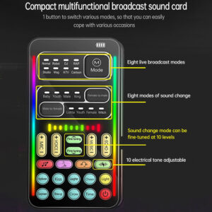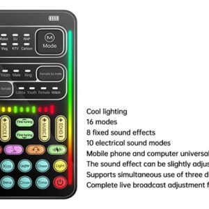 8 efeitos sonoros ao vivo para controlar a sala. 8 tipos de efeitos sonoros quentes. Fácil de aquecer a atmosfera da transmissão ao vivo, ao vivo, interessante – transmissão de acompanhamento compatível. Transmissão compatível de alta qualidade. Simples e conveniente, aproveite a música do
