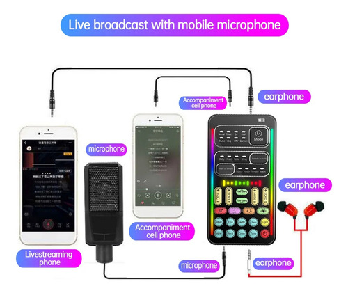 Basta um telefone celular com placa de som, fone de ouvido, você pode transmitir ao vivo em qualquer lugar.