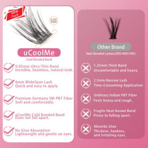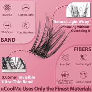 Versatilidade diurna e noturna, natural com um toque de definição. Uma atualização delicada para seus cílios naturais, perfeita para realçar sem exagerar. – Fibras premium leves e macias: experimente o máximo de conforto com fibras premium leves e “nascidas macias”; feitas de PBT com memória de formato de 0,05 mm, garantindo que não dobras e mantendo uma curvatura estável para uso natural e confortável durante todo o dia – Soft Natural with Slightly Wispy: a série Secret apresenta uma faixa de cílios invisível ultrafina de 0,05 mm com o Test Fibers, oferece um aprimoramento sutil e natural com um toque suave e fino, perfeito para uma aparência diária discreta que complementa sem exagerar. – Aplicação eficiente com menos cachos: obtenha uma aparência completa com apenas 10 a 12 cachos por aplicação, graças ao nosso design de faixa mais larga; economiza tempo e simplifica o processo em comparação com 20-28 unidades necessárias em 30D ou 40D – Cílios prontos para férias – 150 horas de glamour: perfeitos para férias e uso prolongado, os cílios uCoolMe oferecem até 150 horas de beleza duradoura; evite falhas nos dias de praia para noites festivas, permitindo que você se concentre em criar memórias — Repleto de valor e uso duradouro: cada caixa inclui 154 grupos de cílios, fornecendo suficiente para 10 a 14 aplicações completas; com cada conjunto durando até 7 dias, desfrute de cílios lindamente aprimorados por até 100 dias por caixa — Superior Bond & Seal: impermeável e seguro para dormir, nosso adesivo e vedação garantem que os cílios permaneçam firmes no lugar mesmo enquanto você dorme; não irritante, fácil de aplicar, reduz a aglomeração e dura até 150 horas com os devidos cuidados; o removedor funciona em 10 segundos