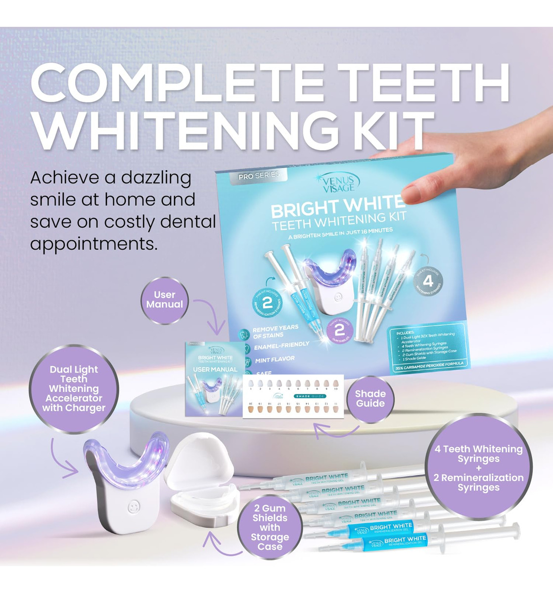 kit de clareamento dentário máquina de clareamento dental kit de clareamento dental branco kit de clareamento dental com luz LED gel clareador de dentes de 5 minutos clareamento dental noturno dispositivo de clareamento dental com luz azul blancamiento de dientes luz clareadora dental profissional para clareamento dental kit de clareamento dental kit de clareamento dental clareamento dental para dentes clareamento dental para aparelhos ortodônticos productos para blanquear los dientes gel clareador dental para bandejas kit de blanqueamiento de dentes produtos de clareamento dentário blanquear dientes clareamento dental profissional clareamento dentário blanqueamiento dental profesional clareamento dental clareamento rápido sensível para dentes sistema de clareamento dental gel clareador dental kit de clareamento dental UV kit de clareamento dental infantil clareamento dental imediato kit de clareamento dental sensível luz ultravioleta para clareador dental kit de clareamento dental leve em casa kit de clareamento dental clareador dental com sorriso clareamento dental instantâneo clareador de dentes gel clareador dental para clareamento dental com luz LED clareamento dental azul clareador dental gel clareador dental mais forte dispositivo de clareamento dental alvejante kit de clareamento LED peróxido de carbamida alvejante em gel para clareamento dental kit de gel clareador de dentes tiras de clareamento com luzes aceleradoras LED de clareamento dental – Whiten Like A Pro: nosso kit de clareamento dental LED tem tudo o que você precisa para um sorriso deslumbrante: 4 seringas de gel clareador para bandejas, 2 seringas de remineralização, 2 bandejas bucais e um dispositivo de luz de clareamento dental. Um sorriso brilhante sem as contas dentárias. – Apague anos de manchas: você adora café ou vinho? Não se preocupe! Nossas seringas de clareamento dental têm uma fórmula de 35% de peróxido de carbamida para clareamento dental visível e seguro. Diga adeus a anos de manchas causadas por café, chá, vinho, fumo e muito mais. – Clareamento rápido dos dentes, sem sensibilidade: nosso dispositivo de luz LED para clareamento dental usa luz azul para acelerar o clareamento e luz vermelha para reduzir a sensibilidade. As canetas de remineralização fortalecem o esmalte e afastam as manchas para um sorriso duradouro e brilhante. – Conforto e precisão: obtenha um sorriso mais brilhante com facilidade! Nossas bandejas de dentes para clareamento se encaixam perfeitamente em todos os tamanhos de boca. Cada tratamento dura 16 minutos, e o cronômetro embutido do dispositivo de luz LED para clareamento dental garante que você esteja sempre no caminho certo. – Promessa do Venus Visage: Quer fazer alguém sorrir? Nossos kits de clareamento dental são lindos presentes para qualquer ocasião. Eles vêm em caixas premium prontas para presente – sem necessidade de embrulhar! Se você não estiver 100% satisfeito, avise-nos e resolveremos o problema sem problemas.