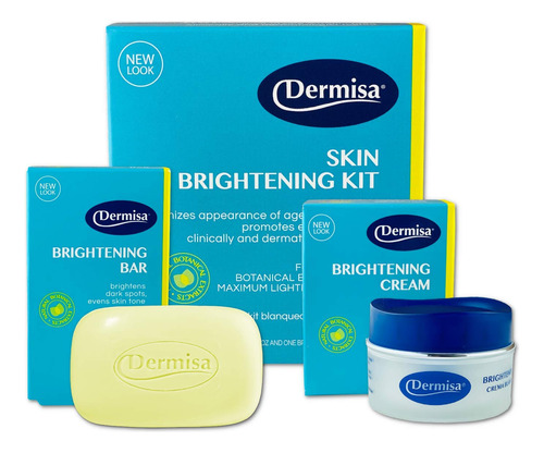 Kit de clareamento Dermisa – [CREME ILUMINADOR] – Formulado especificamente para clarear a aparência de manchas escuras, sardas e manchas da idade, enquanto hidrata a pele para uma aparência saudável e radiante – [BARRA ILUMINADORA] – Projetado para limpar e iluminar suavemente a aparência de manchas escuras, sardas e manchas da idade, proporcionando uma espuma rica e hidratante – [INGREDIENTES NATURAIS EFICAZES] O creme contém 4 Extratos clareadores botânicos naturais: ácido kójico, extrato de alcaçuz, arbutina e groselha indiana (AMLA) e a barra contém 3 desses extratos – [EXCLUSIVO] [FORMULAÇÃO] O creme é livre de óleo, sem sulfato e sem corantes; projetado para todos os tipos de pele. A barra é livre de parabenos, sem sulfato, sem ingredientes de origem animal, sem testes em animais, óleo de palma de origem sustentável da RSPO e base 100% vegetal – [SEGURA E TESTADA] – Sem ingredientes branqueadores ou irritantes agressivos