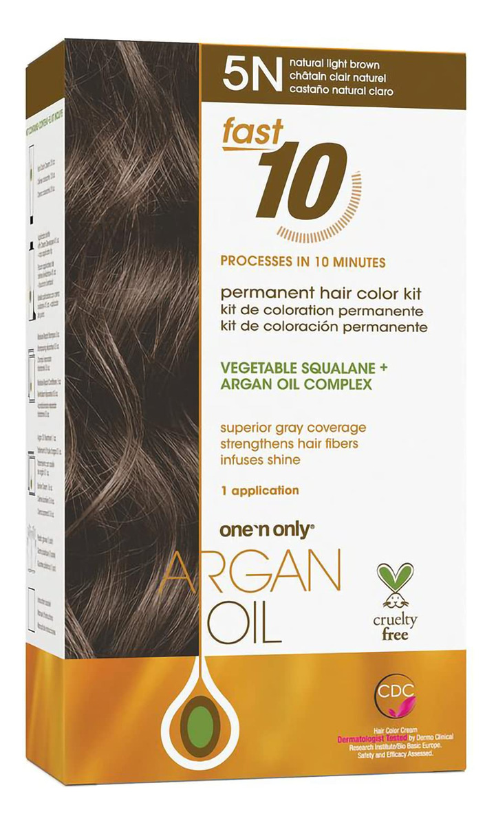 Kit de coloração de cabelo permanente One 'n Only Argan Oil Fast 10, castanho claro natural, cobertura de cabelos grisalhos em 10 minutos, ajuda a manter o equilíbrio natural da umidade, micropigmentos avançados para tons naturais