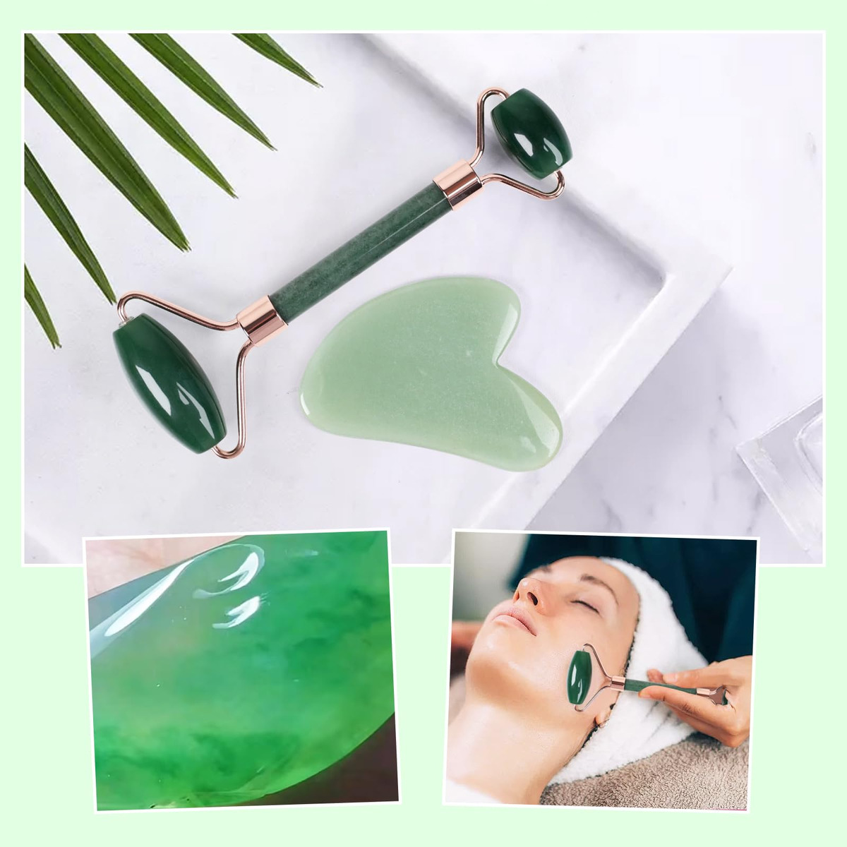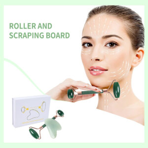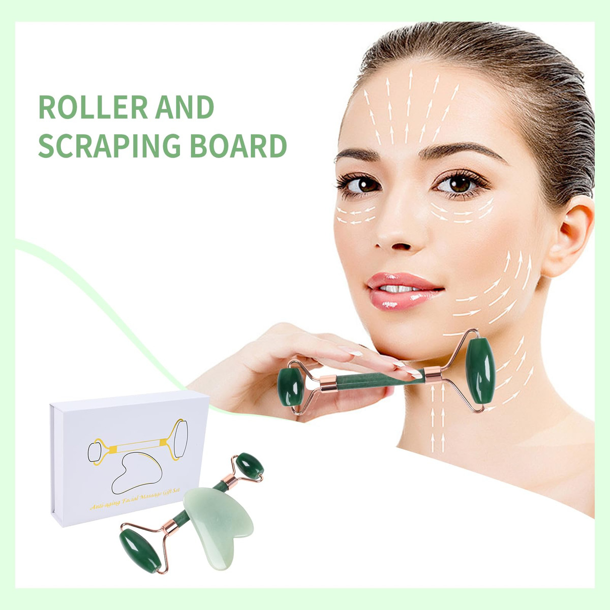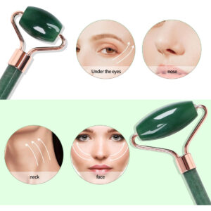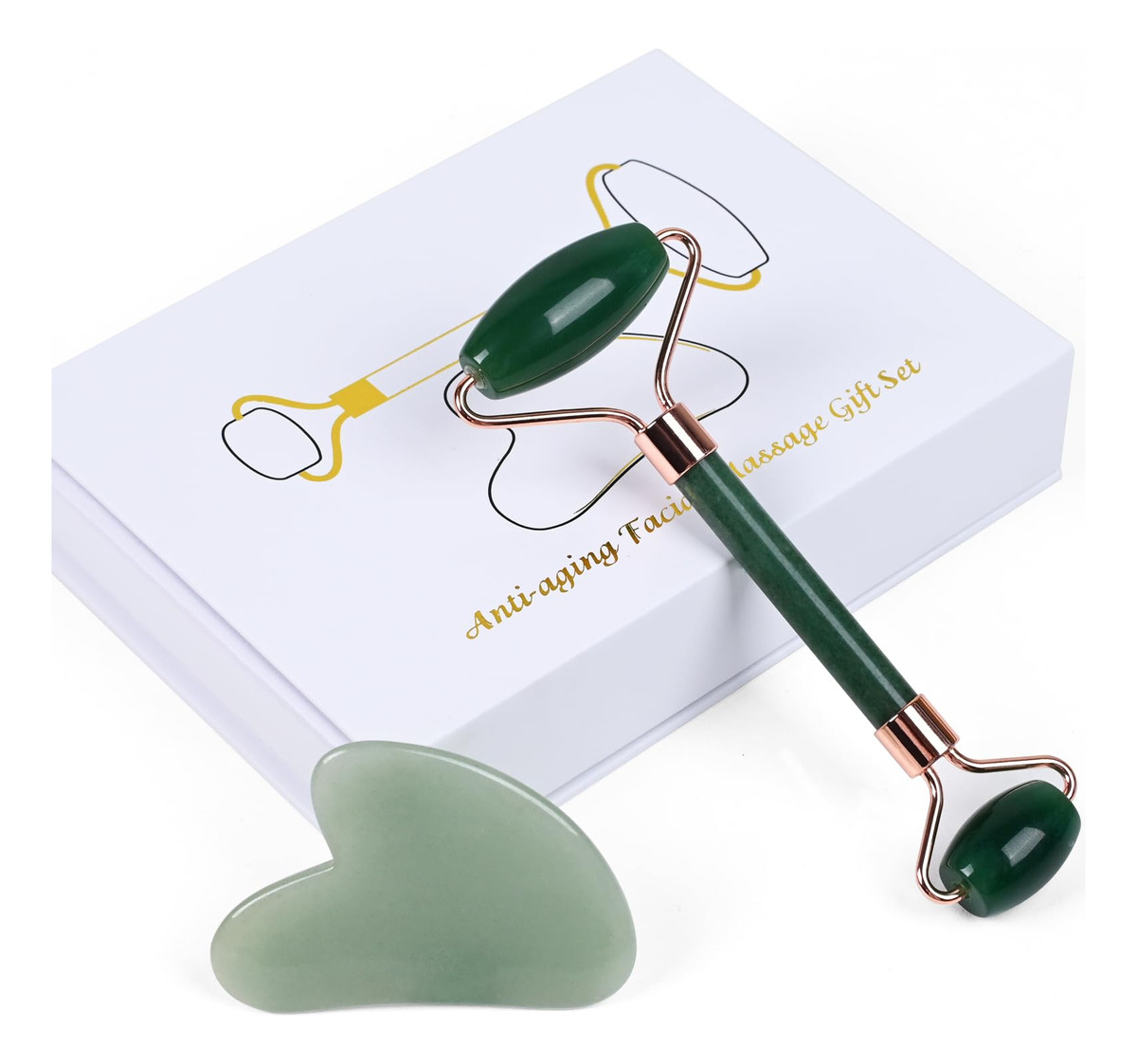 Kit de rolo de jade rosa quartzo e kit facial Gua Sha para cuidados com a pele facial, ferramenta de escultura em pedra, rolo massageador para cuidados com a pele, presente para homens e mulheres (verde) — o rolo facial é feito de pedra de jade 100% natural. Sem produtos químicos ou irritantes, o rolo ajuda você a ter uma pele melhor – Desfrute de uma massagem saudável e suave – O rolo facial Jade Gua Sha ajuda a aumentar a circulação sanguínea com uma boa quantidade de pressão, o que pode reduzir o inchaço e as rugas. Usar um rolo com firmeza pode liberar alguns nós ou músculos tensos no rosto após um longo dia. Ao trabalhar com seus produtos de rotina facial habituais, use o rolo de jade por último para fixar seus produtos. – As ferramentas Gua Sha ajudam a esculpir e contornar suas características faciais, realçando sua beleza natural. Incorpore esse luxuoso ritual de autocuidado à sua rotina de cuidados com a pele para melhorar a drenagem linfática e liberar a tensão, deixando sua pele visivelmente mais lisa e tonificada. – A cabeça de massagem maior é usada para áreas maiores da pele, o rolo menor é usado sob os olhos. – Nosso rolo de jade e nossa ferramenta Gua Sha vêm em uma embalagem requintada e pode servir como presente para o Dia dos Namorados ou Dia das Mães
