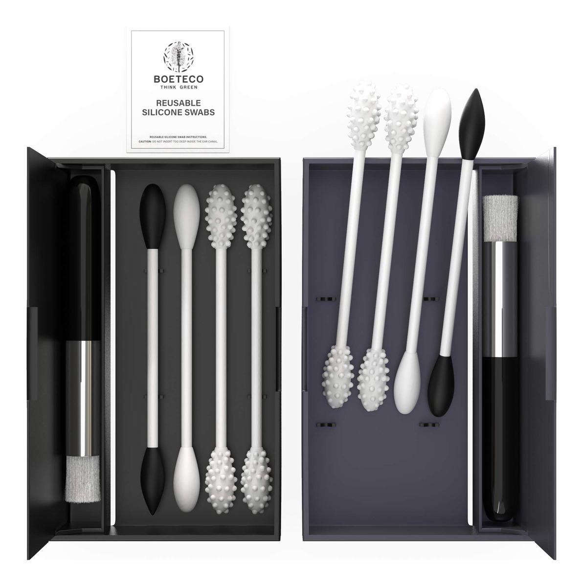 Os cotonetes reutilizáveis com as pontas The Wont Fall Off! Obviamente, nem todos os cotonetes com ponta de silicone são criados da mesma forma. E a partir do momento em que você começar a usar os cotonetes faciais e auriculares BOETECO sem desperdício, você perceberá por que garantimos uma vida útil de 10 anos! Veja bem, ao contrário da maioria dos cotonetes de silicone com pontas removíveis estranhas que também caem, sem falar na falta de variedade, esse conjunto de cotonetes se tornará um dos produtos sem resíduos mais satisfatórios que você já descobriu. Veja, por exemplo, o adesivo de resistência industrial. As pontas foram afixadas com a segurança em mente. Apesar dos avisos, sabemos que você vai colocá-los nos ouvidos, então usamos o adesivo mais forte para que as pontas não caiam. E você também não pode retirá-los! Essa vedação hermética cria uma ponta MAIS HIGIÊNICA que não fica presa embaixo dela e, naturalmente, torna o uso de produtos sem desperdício como esse muito mais seguro e fácil de limpar. 1 pacote de cotonetes de silicone BOETECO com 2 estojos (2 x 3,2 polegadas), 4 cotonetes por estojo. 8 cotonetes no total! (2x) Em forma normal de Q T, (4x) cotonetes com nódulos, (2x) cotonetes pretos com pontas pontiagudas, (2x) escovas de limpeza ideais para bebês, idosos e animais de estimação. O silicone é IDEAL para limpar rímel e delineador de olhos! Use as pontas dos nódulos para limpar as orelhas e as pontas pontiagudas para limpar os cantos em casa! Fácil de limpar com sabonete, removedor de maquiagem ou desinfetante e água quente reutilizável por 10 anos! As hastes e estojos são de plástico sem BPA e removem pelo menos 20.000 cotonetes descartáveis do nosso planeta! Vem com instruções e garantia de 3 anos. Portanto, se é hora de menos desperdício, presentes ecológicos e uma alternativa mais segura aos cotonetes com pontas perdidas, por que não experimentar os cotonetes BOETECO agora? – DICAS QUE NÃO CAIRÃO: Não é horrível ver cotonetes de silicone reutilizáveis sendo vendidos que desalojam suas minúsculas pontas dentro dos ouvidos das pessoas. Ninguém quer aquela viagem para o pronto-socorro, certo? Bem, felizmente, esses não são esses! Usando o adesivo de grau médico mais forte, os cotonetes de ouvido BOETECO duram 10 anos e as pontas estão totalmente intactas! Assim, você pode aproveitar a vida útil zero, sem nenhuma preocupação extra. – 2 KITS, 4 COTONETES (8 NO TOTAL): use um para casa e outro para outro lugar! Você recebe dois estojos de cotonete reutilizáveis (2 x 3,2 polegadas) com (2) formato de cotonete normal, (4) pontas de nódulos de ponta dupla, (2) cotonetes pretos em formato de ponta pontiaguda e ponta regular e (2) escova de limpeza. Então, ao pedir o seu agora, você receberá 8 cotonetes de maquiagem e ouvido, 2 pincéis de limpeza, 2 estojos e 1 guia de instruções no total. – Ideal para idosos, crianças e animais de estimação: o conjunto de cotonetes reutilizáveis BOETECO Zero Waste é ideal para idosos, crianças, animais de estimação e bebês. A caixa e as hastes são de plástico sólido sem BPA e projetadas para 10 anos de reutilização. Portanto, apenas um pacote protege a terra e seus oceanos de pelo menos 20.000 cotonetes descartáveis de algodão para os ouvidos — FÁCEIS DE LIMPAR E FÁCEIS DE LIMPAR! Você sabia que é mais fácil limpar rímel e delineador com um cotonete de silicone? E enquanto outros dizem que o silicone é muito macio para os ouvidos, outros ADORAM as pontas dos nódulos para a cera de ouvido! Não os empurre para o canal auditivo! Para limpar, você pode usar removedor de maquiagem, sabonete neutro, desinfetante, água quente da torneira ou usar o pincel incluído. – Garantia de 3 anos: os cotonetes de ouvido e maquiagem BOETECO são sustentáveis e sem resíduos apresentam embalagens de silicone, plástico e papel reciclado. E embora os plásticos não sejam produtos ecológicos, você naturalmente concordará que 10 anos de uso de cotonete reutilizável são uma escolha mais óbvia do que seu equivalente de plástico de uso único. Então, se é hora de menos desperdício e de uma alternativa mais segura aos cotonetes perdidos, por que não experimentar o BOETECO agora?