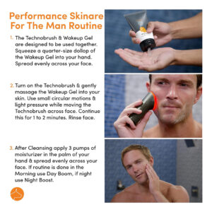 A Dogface está empenhada em mudar os cuidados com a pele dos homens! Nossa pele é diferente: mais oleosa, com poros maiores e até 30% mais espessa, e nossos rituais no banheiro são diferentes. Apesar do aumento da demanda por cuidados com a pele e do desejo dos homens de ter a melhor aparência e se sentir bem, os homens ainda estão perdendo a vantagem. Nossa solução? Mudamos os cuidados com a pele para o chuveiro com um simples tratamento facial diário que proporciona uma pele instantaneamente mais bonita. Sem ingredientes do sabor do mês, sem embalagens sofisticadas e sem perda de tempo. Temos a missão de dar aos homens uma pele bonita. Garantimos nossos produtos com orgulho e somos incansáveis em oferecer resultados reais. FEITO PARA HOMENS, o revolucionário Dogface Technobrush patenteado foi feito especificamente para homens para limpeza, esfoliação e bem-estar geral da pele. Enriqueça seu rosto com a ferramenta revolucionária de cuidados com a pele que todo homem precisa. O Technobrush é fácil de usar com engenharia avançada, tecnologia proprietária e patenteada de fotomovimento. Engrenagens de metal projetadas com precisão. Design à prova d'água IPX7 com carregamento sem fio. – RED LIGHT PHOTOMOTION A luz vermelha no Technobrush melhora o bem-estar geral da pele, enquanto as lâminas e cerdas de silicone exclusivas criam uma esfoliação suave e uma limpeza profunda. À prova d'água até a classificação IPX 7, então você pode usar o Technobrush no chuveiro ou na pia. AÇÃO TRIPLA: 3 zonas separadas, o Technobrush tem uma cabeça de silicone massageadora exclusiva e canais transparentes que giram e transmitem simultaneamente luz vermelha à pele para o bem-estar geral da pele. – Gel facial 5 em 1 WAKEUP GEL que limpa, esfolia, estimula, hidrata e tonifica a pele no chuveiro. O Dogface Wakeup Gel também funciona como um limpador esfoliante e um gel de barbear lubrificante. Quando usado com o Technobrush, ajuda a esfoliar a pele, abre os poros e suaviza a barba. O colágeno vegetal melhora a elasticidade da pele e aumenta o fluxo sanguíneo para a pele. Os ésteres de Jojo reduzem as manchas ásperas e escamosas e aumentam a firmeza da pele. – O creme hidratante DAY BOOM melhora a aparência da pele em apenas 10 segundos. Se sua pele é oleosa ou seca. A fórmula Day Booms proporcionará imediatamente uma pele hidratada, hidratada e com aparência mais fresca. O ácido hialurônico é o poderoso carro-chefe que tem uma tremenda capacidade de atrair umidade e água. A fórmula também inclui os benefícios dos extratos de jojoba, amêndoa doce, girassol e prímula que trabalham juntos para criar um creme diurno poderoso e voltado para o desempenho que hidrata a pele. – NIGHT BOOST é um sérum facial noturno masculino. Nossa formulação de retinol baseada na ciência funciona enquanto você dorme. Possui o sistema de liberação MICROSPONGE, que usa partículas microscópicas para fornecer liberação sustentada de retinol na pele, proporcionando a liberação gradual do ativo e reduzindo o potencial de irritação. Combinado com vitamina C, fitocomplexo e ácido hialurônico, auxilia no rejuvenescimento da pele e na redução da aparência de linhas finas e rugas. – O kit inclui Dogface Technobrush, gel de limpeza Wakeup 5,3 onças, hidratante Day Boom 2 onças e sérum Night Boost 2 onças