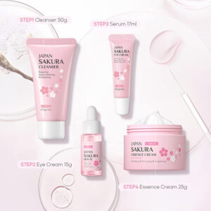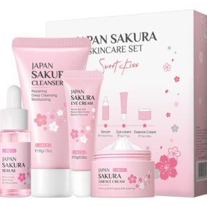 1 pacote de conjunto de cuidados com a pele Sakura, contendo limpador facial de limpeza profunda+creme facial hidratante, soro facial refinador de pele+creme reafirmante para os olhos, suavizando linhas finas. A embalagem do produto pode ser atualizada com frequência; a embalagem pode ser ligeiramente diferente da imagem. Por favor, OBSERVE antes de comprar. O produto é o mesmo. – O pacote contém limpador facial 50g+creme facial 25g+creme para os olhos 15g+soro facial 17ml. – Infundido com extrato vegetal, vitamina C e outros ingredientes ativos, que ajudam a hidratar a pele, remover a escuridão da pele – O limpador facial ajuda a limpar profundamente a pele. O sérum facial ajuda a refinar a pele, o creme para os olhos ajuda a remover olheiras e linhas finas ao redor dos olhos. – Fabricado na China. O pacote é fácil de executar.