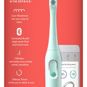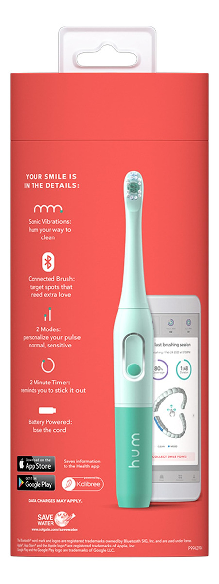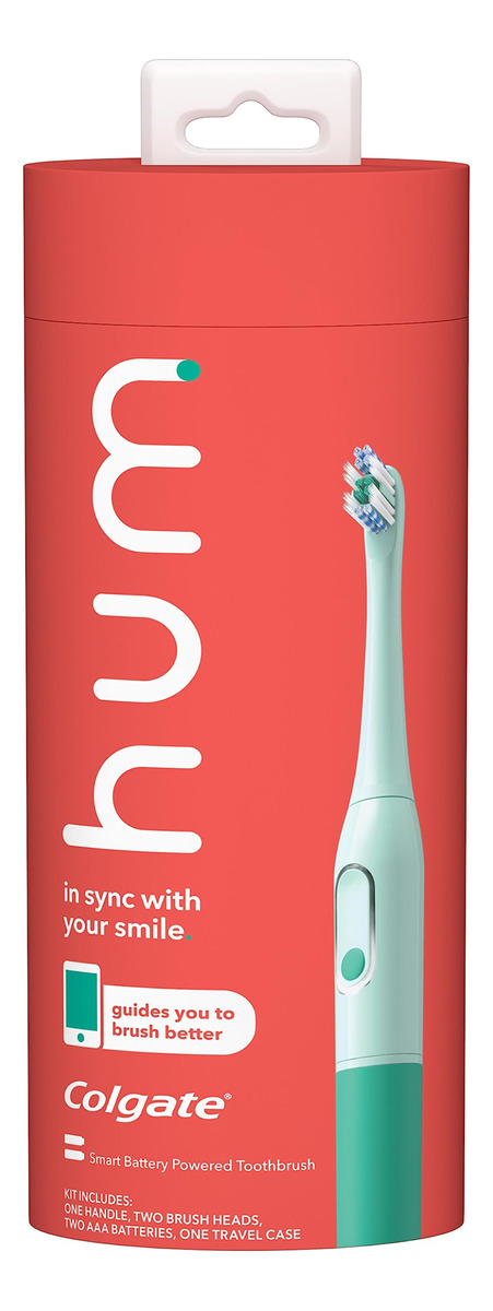 Kit de escova de dentes com bateria inteligente hum by Colgate, alça de escova de dentes sônica com 2 cabeças de recarga e estojo de viagem, azul-petróleo, exclusivo da Amazon — O kit inicial inclui: 1 alça e cabeça de escova de dentes elétrica inteligente para adultos, 2 pilhas AAA, 1 estojo de transporte e uma cabeça de escova extra para mantê-lo cantarolando por até 6 meses — A escova de dentes inteligente orienta você a escovar melhor: a escova de dentes bluetooth conectada visa locais que precisam de amor extra. Material: ABS (acrilonitrila butadieno estireno) – Situação ganha-ganha: melhore sua escovação enquanto ganha pontos em troca de recompensas – Sônica poderosa vibrações em 2 modos: personalize seu pulso escolhendo o nível de vibração adequado para você; escolha entre normal ou sensível – Escova de dentes com cronômetro: lembra que você deve aguentar por 2 minutos – Escova de dentes alimentada por bateria: perca o cabo (2 pilhas AAA incluídas) – Alça projetada por especialistas: sua mão não vai querer soltá-la – Reordenação inteligente: a Amazon Alexa avisa quando você precisa de uma cabeça de escova de dentes substituta, ou pode configurar reordenamentos inteligentes para que você sempre tenha cabeças de escova quando necessário