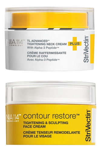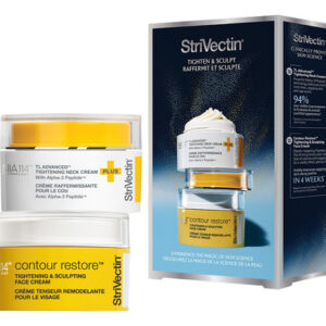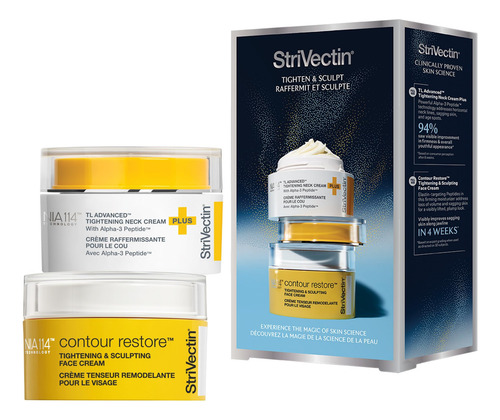 Kit de apertar e esculpir StriVectin TL Advanced Holiday Duo, ilumina e suaviza o tom da pele, peptídeos e ácido hialurônico — magia tensora e modeladora Experimente a magia da ciência da pele A magia de uma pele firme, esculpida e com aparência perfeita. Para dar, receber ou ambos.