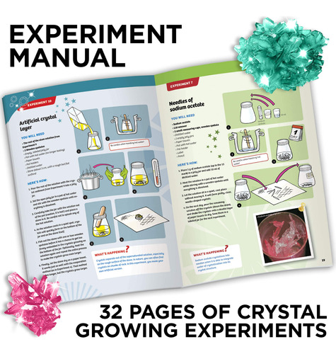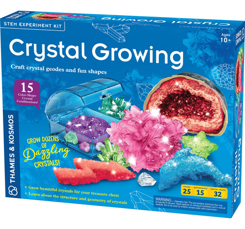 Thames & Kosmos Crystal Growing | Kit experimental STEM | Cultive dezenas de cristais coloridos e deslumbrantes! | Aprenda sobre cristalização e conduza experimentos científicos clássicos | Faça geodos de cristal | A partir de 10 anos – Cultive dezenas de cristais deslumbrantes e conduza 15 experimentos esclarecedores com este kit científico clássico. – Aprenda sobre a química do cultivo de cristais: investigue e observe as propriedades únicas, a estrutura e o processo de formação de quatro tipos de cristais quimicamente diferentes. – O novo método inovador e proprietário para cultivar cristais coloridos inclui tinta de papel, resultando em cores mais saturadas. – As misturas reformuladas para cultivo de cristais estão mais seguras do que nunca! – Inclui um manual colorido de 32 páginas atualizado em 2023 com usabilidade aprimorada e um design novo. – Inclui 15 cores e formas diferentes, 15 experimentos e 25 peças, incluindo um par de pinças bônus. – Oferece materiais de qualidade, ciência abrangente e autêntica e um ótimo valor.