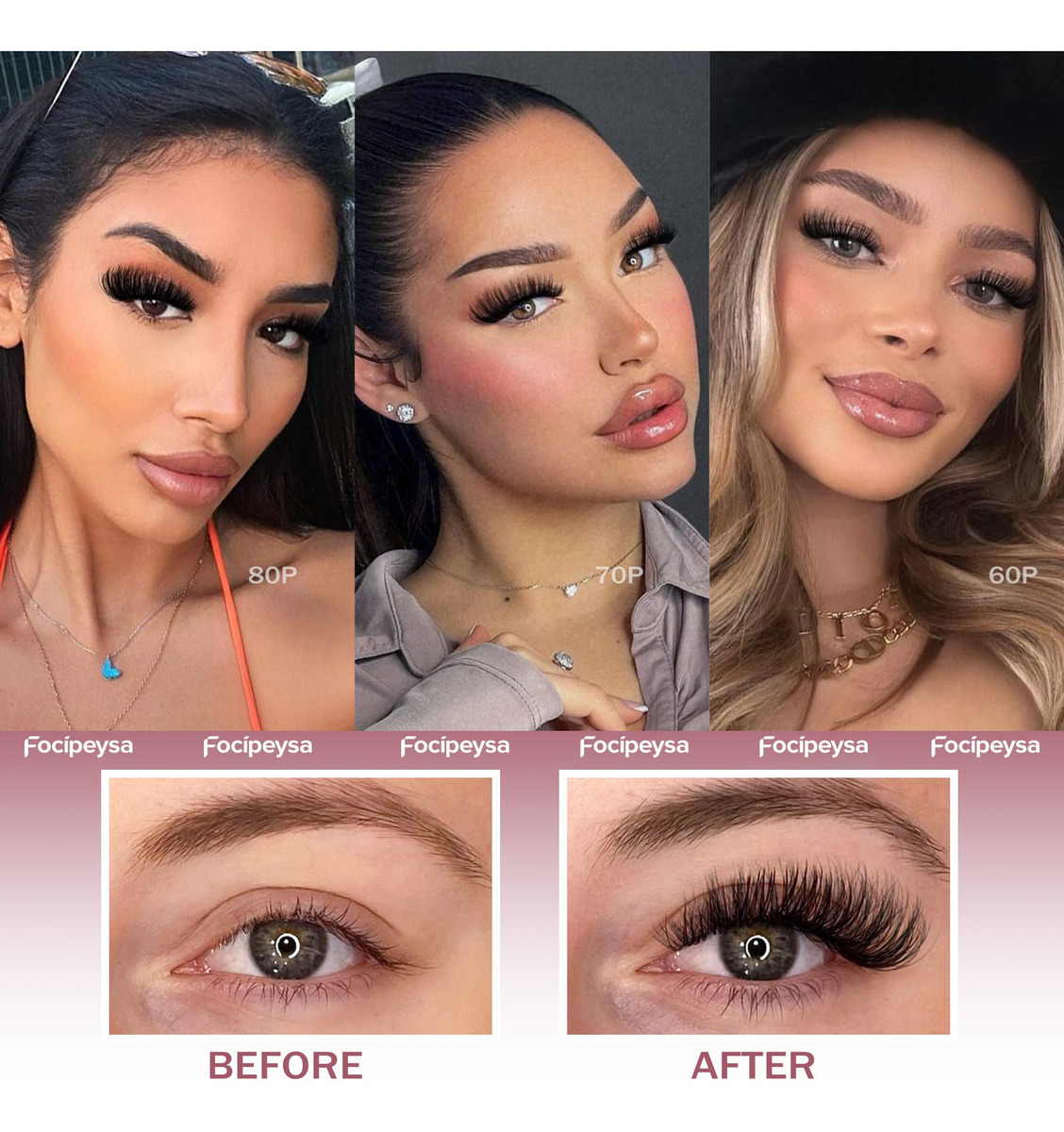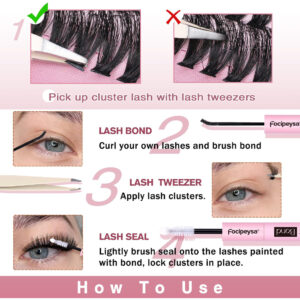 Pacote de extensões de cílios Focipeysa DIY – Usando os cílios cacheados para ser uma linda garota: 1. Comprimento: cachos de cílios de 9-16 mm de comprimento misto. 2. Estilo: extensões de cílios com grupos de volume macios. 3. Pacote: grupos de cílios 60D+70D+80D. 4. Inclui: 300 unidades de cachos de cílios+colagem e selo+pinça. Vantagem do pacote Focipeysa Lash Clusters: todos os cílios são feitos à mão com cuidado. Crie olhos bonitos e glamorosos. Fácil de aplicar e reutilizável com muito cuidado. Combine perfeitamente com seus próprios cílios. Hipoalergênico e vegano. Como aplicar cachos de cílios naturais: 1. Pegue os cílios com uma pinça. 2. Ajuste os cílios finamente para se ajustarem à curva dos olhos. 3. Aplique cola ao longo da faixa dos cílios. 4. Feche os olhos conforme apropriado e garanta um ajuste adequado piscando. – Mistura versátil de comprimento e densidade: a extensão de cílios oferece de 9 mm a 16 mm, combinando habilmente a extensão de cílios de 60d+70d+80d para garantir que cada conjunto de cílios ofereça um efeito de transição distinto e macio. Os 300 cachos de cílios ultrafofos melhoram significativamente a dimensão e o comprimento dos olhos – Cachos de cílios C-Curl: utilizando tecnologia de curvatura C de nível profissional, esse padrão exclusivo de ondulação eleva perfeitamente a curvatura fina dos cílios sem ser excessivamente dramático ou causar desconforto na pálpebra superior, fazendo com que os olhos pareçam mais levantados e maiores – Cílios individuais Fluffy Volume: extensões de cílios finas DIY com colagem, selagem e borbulha pinças, até mesmo usuários iniciantes que experimentam o aplicativo Self-lash podem gerenciar facilmente. O design de extensões de cílios em forma de cacho torna o uso doméstico simples e conveniente, permitindo que você obtenha extensões de cílios com qualidade de salão sem a necessidade de um esteticista profissional – Durabilidade e conforto: feitas de fibra de vison sintética, as extensões de cílios individuais são dotadas de maciez e realismo excepcionais, garantindo conforto e estabilidade duradouros durante o uso. Apesar de piscar frequentemente durante as atividades diárias, cada extensão de cílios mantém sua forma e brilho originais. Sobre o conjunto de cílios da Focipeysa: Se você tiver alguma dúvida sobre o kit de extensões de cílios, informe a Focipeysa, somos responsáveis por nosso kit de cílios em cacho e por sua beleza. Obrigado por escolher o kit de cílios em cacho Focipeysa