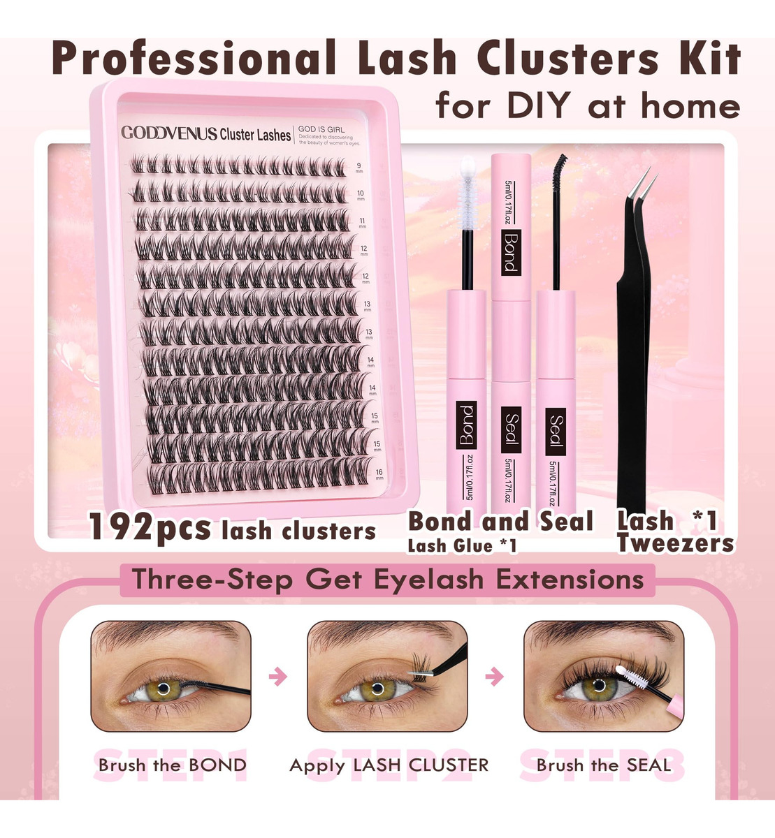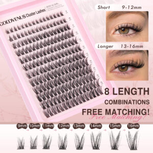 Kit Goddvenus Individual Eyelashes Wispy Lash Clusters — Eleve seu estilo de cílios com resultados profissionais! Sua solução definitiva para obter extensões de cílios dignas de um salão de beleza em casa ou como maquiador profissional. Este kit abrangente, projetado especificamente para iniciantes, contém tudo o que você precisa para criar cílios deslumbrantes e naturais que duram o dia todo. Com seus cílios D Curl de 192 unidades de qualidade premium, cílios russos, cola adesiva, selante e pinça de precisão para cílios, este kit é seu ingresso para dominar a arte da aplicação individual de cílios. – 1. Qualidade premium e design fino: os cachos de cílios Goddvenus apresentam um design D Curl que adiciona um toque natural e glamouroso à sua aparência. Com 192 peças no kit de extensão de cílios, esses cílios leves se agrupam perfeitamente para criar um efeito fino, realçando a beleza dos olhos sem sobrecarregar. – 2. Aplicação para iniciantes: criado especificamente para iniciantes, este kit de extensão de cílios DIY inclui uma fórmula de colagem e vedação para cílios fácil de usar que garante uma fixação forte à prova d'água e duradoura, enquanto nossa pinça de precisão simplifica o processo de aplicação, permitindo sempre uma colocação fácil e precisa. – 3. Aparência natural e glamorosa: obtenha extensões de cílios DIY profissionais com qualidade de salão em casa com nosso kit de extensão de cílios naturais. Os cílios naturais individuais combinam perfeitamente com seus cílios naturais, oferecendo uma aparência cheia e volumosa, ótima para uso diário ou ocasiões especiais. – 4. Versátil e personalizável: nosso kit de extensão de cílios finos vem com uma variedade de comprimentos, 9-10-11-12-13-14-15-16 mm, permitindo que você personalize a aparência dos cílios para se adequar a qualquer ocasião, desde um aprimoramento sutil até alcançar o estilo desejado. – 5. Kit completo para glamour sem esforço: tudo o que você precisa para uma aplicação perfeita de cílios inclui cachos de cílios naturais D Curl premium, uma cola confiável para colar e selar cílios e uma pinça de nível profissional. Este kit completo de extensão de cílios DIY garante uma experiência perfeita, levando você de iniciante a profissional em pouco tempo. Prepare-se para melhorar seu jogo de cílios sem esforço!