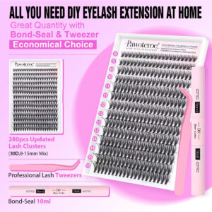 Kit de extensão de cílios 280 unidades Kit de extensão de cílios em conjunto de cílios 30D Feito à mão de 8-15 mm, mistura de cachos naturais com colagem e selo e ferramenta aplicadora de cílios para autoaplicação (kit 30D, 0,07D, 8-15 mm) – Você receberá: Nosso kit de extensão de cílios fornece 280 unidades de cílios (30D, 8-15 mm), 1 colagem e selo de cílios, 1 aplicador de cílios por caixa; alcançar a aparência natural de extensão nunca foi tão fácil com nosso kit de extensão de cílios DIY, que oferece tudo o que você precisa para trabalhar em casa; economize tempo e orçamento para ir ao salão de extensão de cílios – Cluster Lashes atualizados Fibras: nossos cachos de cílios são feitos com os melhores materiais atualizados para garantir maciez, espessura, durabilidade e longevidade, projetados para oferecer cílios mais cheios que parecem mais naturais do que os cílios postiços tradicionais. Diferentes estilos de aparência dependem de você: crie uma aparência de cílios personalizável com nossos grupos de cílios individuais de diferentes comprimentos e volumes; o pacote de cílios em cachos é versátil e pode ser usado em várias ocasiões, seja para sair à noite com amigos, uma ocasião especial ou até mesmo um dia de trabalho; você conseguirá todos esses looks em pouco tempo – Fácil- Dicas de aplicação: enrole suavemente a faixa dos cílios com uma pinça; aplique o adesivo; coloque os cachos dos cílios; use um pincel de vedação para prender – Extensão profissional de cílios: como marca profissional de design de cílios, temos o compromisso de fornecer produtos chiques, com o objetivo de adicionar mais glamour aos nossos clientes