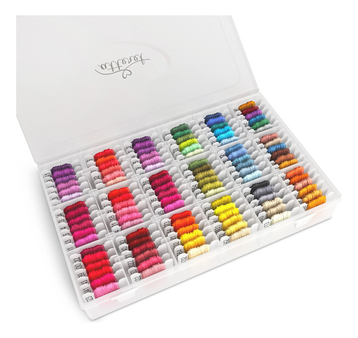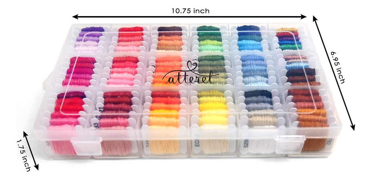 Liberte sua criatividade com este kit de fio dental de bordado de 108 cores, com 99 fios de algodão e 9 fios metálicos pré-enrolados em bobinas de plástico com código de cores DMC para facilitar a organização. Esta caixa organizadora de fio dental bordado mantém seu fio dental de ponto cruz, cordão de bordado e fio de pulseira de amizade livres de emaranhados. Perfeito para projetos de bordado à mão, kits de fabricação de pulseiras de cordas e suprimentos de costura cruzada, este conjunto de fio dental de algodão garante uma costura suave e vibrante. Se você é iniciante ou especialista, esta caixa de fio dental para bordar é o melhor kit de cordões para pulseiras e essencial para artesanato! – FINALMENTE! Controle total de suas linhas; todo o fio dental de bordar está na ponta dos dedos; enroladas em bobinas de plástico marcadas com o código de cores correspondente ao código DMC para que você possa encontrar imediatamente sua cor e mantê-la sem fio dental — O presente perfeito para artesãos de qualquer idade, meninos e meninas — Para você ou para alguém que você ama; este kit é o melhor item essencial para artesanato; seja você iniciante ou bordadeira de longa data, fabricante de joias ou qualquer que seja sua escolha de arte decorativa, esta será sua melhor escolha – os produtos internacionais têm termos separados, são vendidos do exterior e pode diferir dos produtos locais, incluindo adequação, classificação etária e idioma do produto, rotulagem ou instruções – FINALMENTE! Controle total de suas linhas; todo o fio dental de bordado está na ponta dos dedos; enroladas em bobinas de plástico marcadas com o código de cores para que você possa encontrar imediatamente sua cor e manter seu fio dental livre de nós