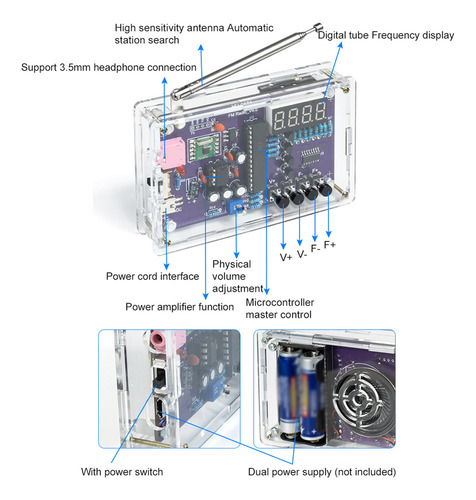 Antena altamente sensível, forte capacidade anti-interferência, suporta busca automática de estações.