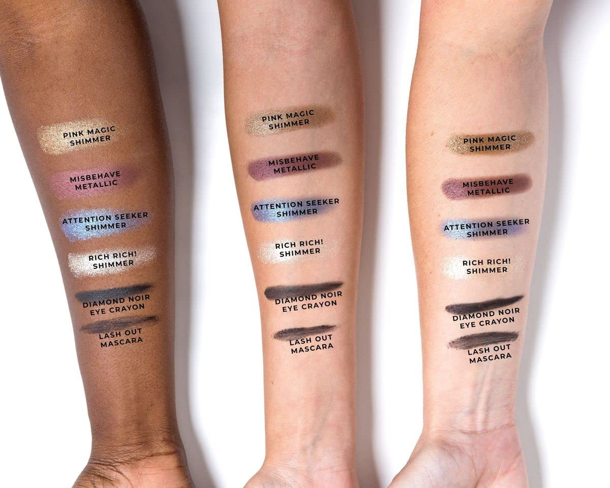 “Às vezes, você só precisa ser um pouco exagerado e POSSUIR ISSO. O kit oftalmológico Be Extra é para quem quer ser visto. Essa combinação de cores cintilantes deixará uma impressão duradoura em qualquer pessoa que olhe para você. O lápis de olhos Diamond Noir é uma cor preta verdadeira. O Rinna Beauty EYE CRAYON foi impecavelmente projetado para uma aplicação fácil. Nossa fórmula de longa duração manterá sua aparência icônica durante todo o dia ou a noite. A fórmula cremosa permite que você misture, defina ou preencha facilmente para criar looks novos e exclusivos. Esta fórmula combina bem com outras e pode ser facilmente misturada com outras tonalidades e fórmulas. O rímel Lash Out é uma cor preta azeviche. A máscara Rinna Beauty LASH OUT é uma fórmula vegana preta azeviche que alonga e enrola os cílios para torná-los mais cheios. Nossa mistura exclusiva de polímeros e ceras naturais oferece uma adesão perfeita aos cílios que promove ondulação e definição. As esferas de nylon se esticam e se alinham para criar um grande volume de cílios. A biotina, a vitamina E e o óleo de coco aumentam os benefícios do condicionamento dos cílios. Quádruplo de sombras Be Extra: Pink Magic é um ouro metálico cintilante, Mishave é uma ameixa cintilante e cintilante, Attention Seeker é um azul celeste claro cintilante, Rich Rich é um aço frio e cintilante. O Rinna Beauty EYE SHADOW QUAD é uma paleta perfeitamente projetada, composta por uma bela variedade de cores que permitem criar seu próprio visual exclusivo. Maravilhosamente usável em acabamentos foscos, cintilantes e brilhantes. A capa chique foi projetada para levar sua beleza para qualquer lugar. Você nunca será pego sem um olho perfeitamente sombreado. Vem com um pincel aplicador profissional de dois lados de comprimento total. Perfeito para aquele evento especial ou quando você só quer um toque de glamour em seus olhos.” – KIT DE OLHOS BE EXTRA ICONIC: vem com lápis de olhos Diamond Noir, rímel Lash Out, palete Be Extra Quad Shadow e um pincel aplicador profissional de dois lados. – BE EXTRA EYE SHADOW QUAD: Pink Magic é metálico, dourado cintilante, Mishave é cintilante e cintilante ameixa, Attention Seeker é um azul celeste claro cintilante, Rich Rich é um aço frio e cintilante. – RINNA BEAUTY LASH OUT MASCARA: é uma fórmula vegana preta azeviche que alonga e enrola os cílios para que pareçam mais cheio. Biotina, vitamina E e óleo de coco aumentam os benefícios do condicionamento dos cílios. – O LÁPIS DE OLHOS RINNA BEAUTY DIAMOND NOIR: foi projetado de forma impecável para uma aplicação fácil. Nossa verdadeira fórmula preta de longa duração manterá sua aparência icônica durante todo o dia ou a noite. – FÓRMULA LIMPA: vegana e livre de crueldade. Na Rinna Beauty, nos esforçamos para despertar a confiança em mulheres ambiciosas por meio de produtos de beleza limpos, sem sulfatos, parabenos, ftalatos ou glúten. Sem fragrância e sabor.