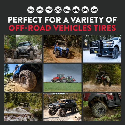– KIT COMPLETO DE REPARO DE PNEUS – O kit completo de reparo de pneus off-road GluetRead é a solução definitiva para qualquer tipo de dano ao pneu, incluindo furos, danos na parede lateral e hastes das válvulas. Adequado para uso em vários tipos de pneus off-road, incluindo 4X4, UTVs, quadriciclos, tratores, carrinhos de golfe e muito mais.