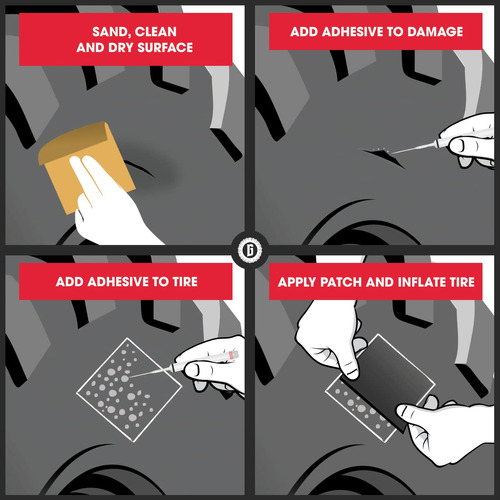 – FÓRMULA DE BORRACHA APRIMORADA E ARMAZENAMENTO MAIS LONGO: O kit completo de reparo de pneus off-road apresenta uma fórmula aprimorada de borracha para um tempo de cura mais rápido (10 minutos) sem a necessidade do acelerador. Além disso, manter o acelerador fora do kit permite que o adesivo dure mais tempo no armazenamento.