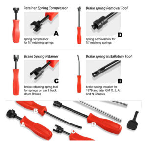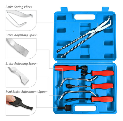 Kit de serviço de freio DNA MOTORING TOOLS-00244 de 8 peças, conjunto de ferramentas de alicate removedor de molas de freio com estojo de transporte, azul – FERRAMENTAS DE DNA DE ALTA QUALIDADE – Nossos técnicos cuidadosos realizam verificações de qualidade e extensas pesquisas ao testar as aplicações automotivas e os acessórios de nossos produtos. Para garantir alta resistência e durabilidade, projetamos os produtos apenas com materiais de alta qualidade. – KIT DE FERRAMENTAS DE REMOÇÃO DE MOLAS DE FREIO – Ideal para substituição de calçados de freio, remoção e substituição de molas de freio a tambor, instalação e remoção de arruelas de molas de freio, folga entre freios, ajuste de calçados e outros trabalhos de reparo de freios a tambor. – Excelente desempenho – Construído em metal tratado termicamente revestido com cromo para maior resistência e longevidade. Com design ergonômico, as alças moldadas em plástico e em formato curvilíneo são em tamanho real para uma aderência confortável e segura, ajudam a economizar seu tempo e esforços durante o uso. – ARMAZENAMENTO CONVENIENTE – Este kit de ferramentas de tambor de freio de 8 peças pode ser facilmente armazenado em um estojo rígido com alças fáceis de transportar e compactas para armazenamento conveniente. Um kit de ferramentas essencial para qualquer manutenção profissional de garagem, bricolage ou automóvel. – O pacote inclui: [1] alicate de mola de freio; [1] compressor de mola de retenção; [1] colher de ajuste de freio; [1] mini colher de ajuste; [1] compressor de mola de retenção; [1] Ferramenta de remoção de mola de freio; [1] Ferramenta de instalação de mola de freio; [1] Estojo de transporte