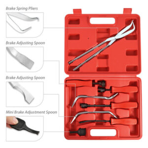 Kit de serviço de freio DNA MOTORING TOOLS-00245 de 8 peças – Conjunto de ferramentas de alicate removedor de molas de freio com estojo de transporte, vermelho – FERRAMENTAS DE DNA DE ALTA QUALIDADE – Nossos técnicos cuidadosos realizam verificações de qualidade e extensas pesquisas ao testar as aplicações automotivas e os acessórios de nossos produtos. Para garantir alta resistência e durabilidade, projetamos os produtos apenas com materiais de alta qualidade. – KIT DE FERRAMENTAS DE REMOÇÃO DE MOLAS DE FREIO – Ideal para substituição de calçados de freio, remoção e substituição de molas de freio a tambor, instalação e remoção de arruelas de molas de freio, folga entre freios, ajuste de calçados e outros trabalhos de reparo de freios a tambor. – Excelente desempenho – Construído em metal tratado termicamente revestido com cromo para maior resistência e longevidade. Com design ergonômico, as alças moldadas em plástico e em formato curvilíneo são em tamanho real para uma aderência confortável e segura, ajudam a economizar seu tempo e esforços durante o uso. – ARMAZENAMENTO CONVENIENTE – Este kit de ferramentas de tambor de freio de 8 peças pode ser facilmente armazenado em um estojo rígido com alças fáceis de transportar e compactas para armazenamento conveniente. Um kit de ferramentas essencial para qualquer manutenção profissional de garagem, bricolage ou automóvel. – O pacote inclui: [1] alicate de mola de freio; [1] compressor de mola de retenção; [1] colher de ajuste de freio; [1] mini colher de ajuste; [1] compressor de mola de retenção; [1] Ferramenta de remoção de mola de freio; [1] Ferramenta de instalação de mola de freio; [1] Estojo de transporte