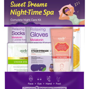 Bons sonhos com Epielle! Mergulhe em um sono sereno com o kit de spa noturno Epielles Sweet Dreams, seu melhor companheiro para o rejuvenescimento da pele na hora de dormir. Este kit tudo-em-um apresenta seis tesouros de cuidados com a pele projetados para cuidar de sua pele enquanto você descansa e experimenta hidratação profunda e cuidados refrescantes todas as noites. O kit inclui uma máscara de vitamina C para iluminar e reavivar a pele cansada, uma máscara para os olhos com aquecimento automático para acalmar e relaxar os olhos com um calor suave e meias e luvas com infusão de melatonina para melhorar a hidratação e suavizar as mãos e os pés enquanto você dorme. Além disso, a máscara refrescante para os olhos revitaliza a área dos olhos e reduz o inchaço para uma aparência matinal fresca, enquanto o gel peeling gommage esfolia suavemente para uma tez mais suave e radiante. Perfeito para se mimar ou como um presente atencioso para uma amiga que valoriza sua beleza e seu sono, este kit Epielle garante bons sonhos e uma pele ainda mais doce, transformando cada noite em uma experiência relaxante de spa. – Under Eye Radiance: revitalize e refresque a área sob os olhos com a máscara Epielles Dark Circle Under Eye. Esta máscara hidratante acalma e ilumina a pele, reduzindo olheiras e inchaço para uma aparência mais jovem e revigorada após cada uso. – Cuidados faciais vibrantes: mergulhe na máscara de vitamina C exclusiva da Epielles, projetada para firmar, levantar e hidratar a pele enquanto diminui os sinais de envelhecimento. Combinada com o Gommage Peel, esta dupla trabalha para esfoliar e limpar profundamente os poros, deixando sua pele limpa, radiante e bem condicionada. – Relaxamento máximo para mãos e pés: trate suas mãos e pés com uma experiência calmante com meias e luvas relaxantes de melatonina Epielles. Enriquecidos com um creme nutritivo, eles deixam sua pele macia, sedosa e totalmente mimada. – Máscara calmante para os olhos Glory: experimente alívio com a máscara de olhos Steambase, que usa vapor de água termal para relaxar os olhos secos e cansados. A tecnologia de autoaquecimento fornece calor úmido consistente, cabendo confortavelmente ao redor dos olhos para até 20 minutos de relaxamento.