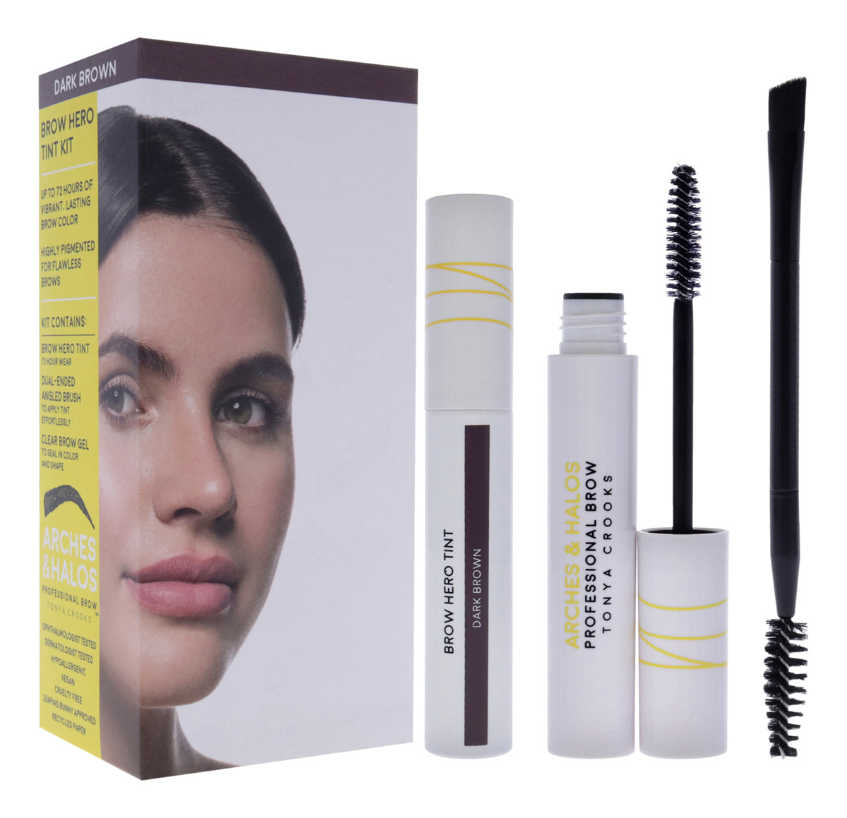 Nosso kit de tonalidade Brow Hero inclui a tonalidade Brow Hero em ruivo, um pincel angular de duas pontas e um gel transparente para sobrancelhas — tudo o que você precisa para obter lindas cores pigmentadas e modelar perfeitamente as sobrancelhas.