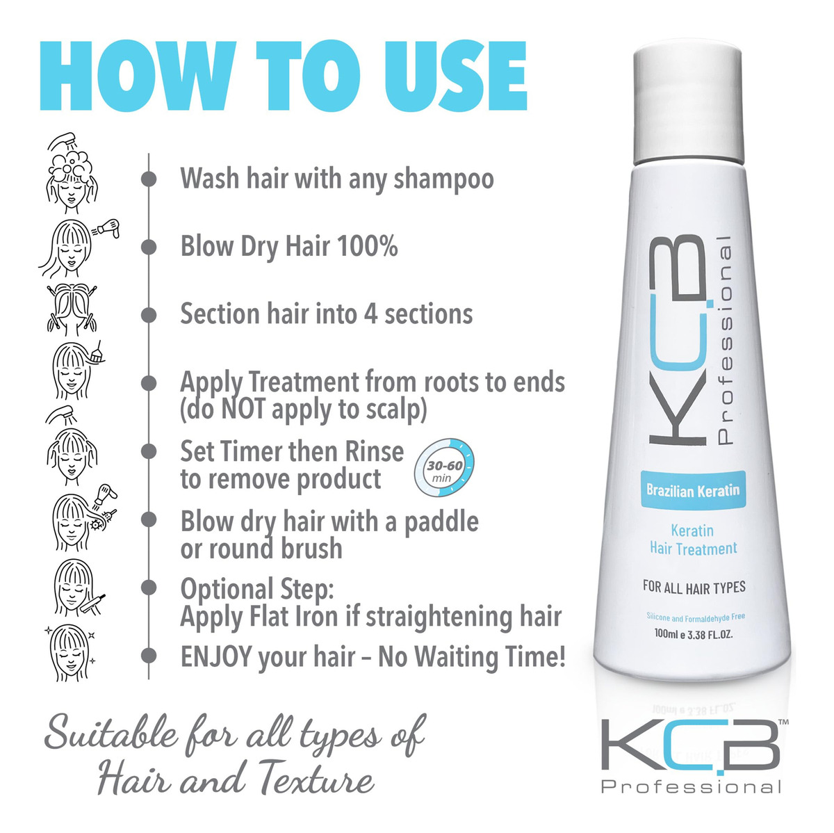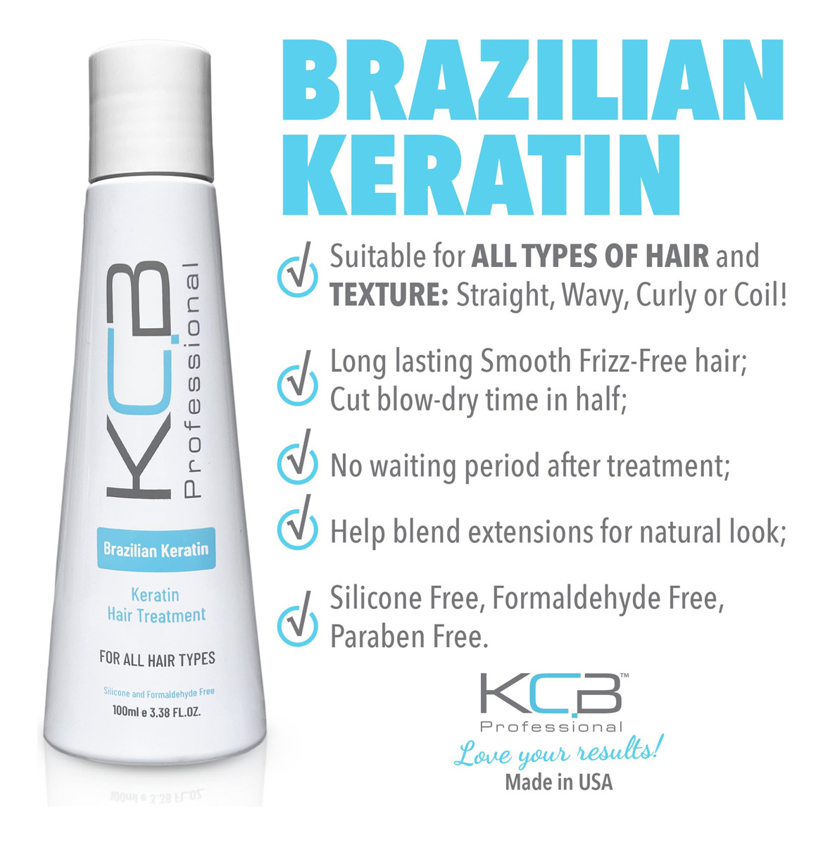 KCB Professional Brazilian Keratin é um alisador profissional de queratina de salão de beleza de 1 etapa para cabelos crespos. Pode ser usado como tratamento de alisamento temporário, se desejado. Rejuvenesce o cabelo, tornando-o suave, forte e sem frizz. O tratamento dura de 3 a 6 meses*. O cabelo recuperará gradualmente a textura natural. A queratina brasileira profissional KCB penetra na haste capilar e oferece importantes benefícios de condicionamento e hidratação. É um tratamento capilar com queratina simples e rápido de usar que suaviza, repara, restaura a vitalidade e fortalece instantaneamente o cabelo ao infundir os cabelos danificados com proteínas vitais de queratina, umidade, nutrientes reparadores, creatina e aminoácidos necessários para reparar o cabelo de dentro para fora. Nosso tratamento capilar com queratina brasileira é adequado para todos os tipos de cabelo e tipos de textura de cabelo, incluindo: fino/fino, médio, grosso, solto, apertado, liso, ondulado, encaracolado e crespo. Como usar, consulte as instruções do produto. Certifique-se de que o cabelo esteja limpo e seco antes da aplicação. Corte o cabelo em 4-8 seções. Aplique a KCB Professional Brazilian Keratin da raiz às pontas (NÃO aplique no couro cabeludo). Defina o cronômetro com base no seu tipo de cabelo. Em seguida, enxágue para remover o produto. Seque o cabelo e penteie como quiser. * Com a aplicação adequada e ao usar produtos profissionais de pós-tratamento, como shampoo, condicionador, máscara reparadora e leave-in da KCB Profession. Os itens essenciais da linha KCB Professional Brazilian Keratin Treatine and Blowout Aftercare foram desenvolvidos para todos os tipos de cabelo para tratar, restaurar, enriquecer, transformar e melhorar a saúde e a condição de cabelos quebrados, frágeis, queimados, secos e danificados. Os benefícios incluem: eliminar o frizz, restaurar os aminoácidos esgotados, definir os cachos, resistir aos efeitos da umidade e do meio ambiente e ser personalizável de acordo com seus objetivos individuais, deixando seu cabelo mais liso, sedoso e brilhante. O kit de aplicação única contém: QTY:1 – Queratina brasileira profissional KCB, 3,38 fl oz /100 ml, luvas e instruções. Cada kit normalmente produz uma média de 1 tratamento. – TRATAMENTO DE CABELO COM QUERATINA PROFISSIONAL DE SALÃO para alisar o cabelo e fornecer controle do frizz do cabelo por 3 meses*. Pode ser aplicado em CASA. Suaviza os fios, doma o frizz e melhora a maleabilidade. – TRATAMENTO PROFISSIONAL DE ALISAMENTO DE CABELO PARA OBTER UMA APARÊNCIA SEDOSA E LISA por até 12 semanas* com os devidos cuidados, se desejado. O cabelo ficará liso e sem frizz e recuperará gradualmente a textura natural. – TRATAMENTO CAPILAR COM QUERATINA que devolve vida aos cabelos danificados com sua fórmula enriquecida com proteínas que ajuda a reparar os danos causados por estressores químicos, térmicos e outros estressores diários. – SEM TEMPO DE ESPERA. Não há restrições. Os usuários podem lavar, colorir, fazer exercícios, nadar, usar rabo de cavalo, clipes e alfinetes logo após o tratamento. Aproveite seus resultados incríveis, pois é ótimo para todos os tipos de cabelo. – NOSSO TRATAMENTO DE QUERATINA BRASILEIRA é fácil de usar e é vegano, livre de crueldade, sem parabenos, sem corante, sem formaldeído, sem silicone e enriquecido com extratos de ingredientes naturais para resultados incomparáveis.