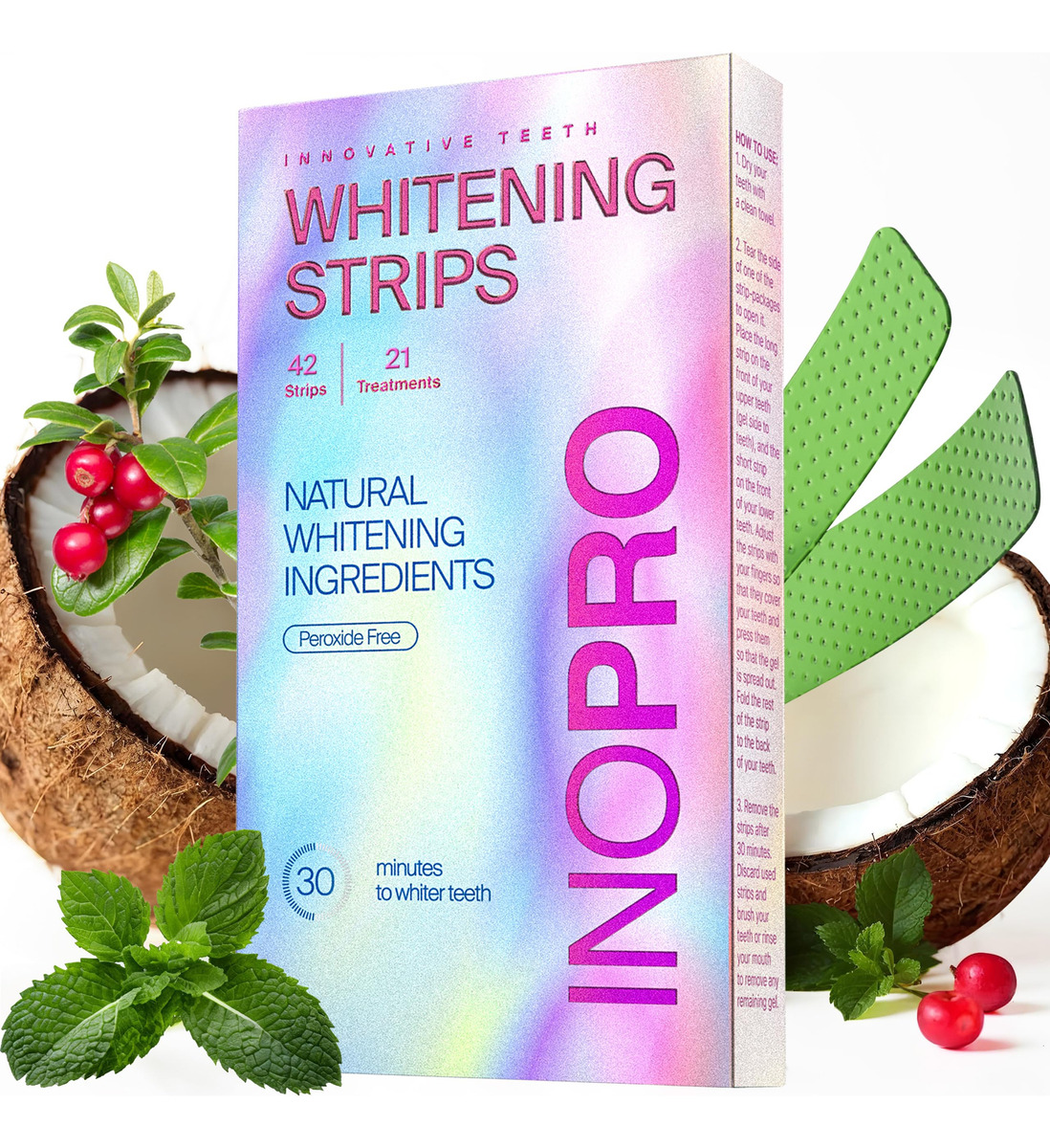 As tiras de clareamento de dentes Arbutin permitem que você clareie os dentes em casa. Ele garante dentes mais brancos e uma melhor higiene bucal com uma fórmula que clareia os dentes com ingredientes clareadores seguros. Esta fórmula elimina a placa bacteriana, o tártaro e as bactérias da superfície dos dentes, resultando em dentes mais limpos. Essas faixas brancas funcionam da mesma forma que uma fita adesiva, pois se agarram firmemente aos dentes. Garantimos que a quantidade certa de ingredientes seja sempre usada, pois uma boa higiene dental é de grande importância para seu bem-estar geral. Seus dentes e gengivas devem estar saudáveis quando você faz o tratamento. Permita-se o melhor clareamento dentário. – Verde é o novo branco. Nossas tiras de clareamento branquearão seus dentes com eficácia sem prejudicar sua saúde bucal. Nossas tiras de clareamento verde têm removedor de manchas natural e sem efeitos colaterais de sensibilidade. Use 30 minutos por dia durante 14 dias para obter um sorriso mais branco e brilhante. – Clareamento sem peróxido: obtenha um sorriso mais brilhante sem o uso de peróxido de hidrogênio, que pode causar sensibilidade em alguns usuários. Nossa fórmula fornece um clareamento eficaz e, ao mesmo tempo, é suave para os dentes e gengivas. Também é isento de SLS (Lauril Sulfato de Sódio), garantindo uma experiência mais suave e não irritante, e não contém álcool, o que o torna mais seguro e não resseca para o uso diário. Perfeito para quem procura uma solução de clareamento mais natural. – Alimentado por um branqueador natural de uva-ursina, antioxidantes verdes e óleo de coco. Todos esses ingredientes são combinados para proporcionar dentes mais brancos e um sorriso mais brilhante. – Testado em laboratório. Todos os ingredientes foram exaustivamente testados por um laboratório independente credenciado. Isso significa que nossos produtos são certificados e seguros para sua saúde bucal. – Good Taste and Enamel Safe. É forte o suficiente para remover manchas, mas não tão forte para causar efeitos de branqueamento severos ou sensibilidade. A faixa de clareamento dental é segura para o esmalte, proporcionando uma agradável experiência de clareamento dental. Ótimo sabor de coco e menta porque o clareamento também pode ser saboroso