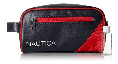 Com 9" x 5" x 4", esta bolsa de higiene de couro vegano Nautica possui 1 grande bolso superior com zíper e uma alça de transporte conveniente, um bolso externo com zíper e um bolso interno com zíper. Esta bolsa de viagem masculina de higiene pessoal mede 9" L x 5" A x 4" W. Cada bolsa tem o nome Nautica impresso em um lado da bolsa de barbear e é uma bolsa de viagem conveniente para produtos de higiene pessoal e é a combinação perfeita de um visual esportivo casual. Feita de couro vegano para dar a aparência de couro verdadeiro, esta bolsa de higiene é fácil de limpar, tornando-a perfeita para usar como bolsa de higiene masculina ou masculina.