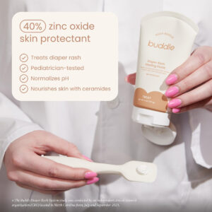Não trate apenas assaduras, evite-as Você sabia que a pele de um recém-nascido é diferente da pele de um adulto? Pode ser até 10 vezes mais sensível, 30% mais fino e reduz a hidratação e a produção de lipídios na pele, o que significa que a pele macia e doce do bebê é mais suscetível à irritação. Pegamos assaduras para que você não precise. A compreensão científica não faz apenas diferença, faz toda a diferença. Com um conhecimento mais profundo da pele infantil, do ambiente das fraldas e do microbioma, conseguimos descobrir as causas subjacentes das assaduras e como evitá-las em 3 etapas fáceis. Prevenir assaduras é tão fácil quanto 1-2-3 Por mais que todos nós desejemos uma solução, o que descobrimos em nossa pesquisa, desenvolvimento e ensaio clínico é que uma abordagem de sistema produz melhores resultados quando se trata do tratamento de assaduras, o que levou ao desenvolvimento de nosso sistema de três etapas. Cada produto Buddle é essencial para uma bolsa de fraldas e desempenha um papel específico na prevenção de assaduras, limpeza, prevenção e tratamento. Limpador de espuma Clean Cheeks Remove as impurezas Bottom Buddy Cream Protege e nutre a barreira cutânea Rash Rescue Heal com a máxima força de óxido de zinco – A solução para irritar a pele inflamada – A pasta curativa Rash Rescue reabastece a barreira cutânea do bebê e fornece proteção máxima contra irritantes nocivos. – Pasta de cura Rash Rescue Nossa pasta de poder curativo máximo com 40% de óxido de zinco e ceramidas reabastecedoras para ajudar a curar a pele de seus filhos e fornecer proteção máxima. Nos primeiros sinais de irritação, aplique generosamente na pele limpa e seca do bebê após cada troca de fralda e especialmente à noite, até que a erupção cutânea desapareça. Prevenir assaduras é tão fácil quanto 1-2-3 Por mais que todos desejemos uma solução, o que descobrimos em nossa pesquisa, desenvolvimento e ensaio clínico é que uma abordagem sistêmica produz melhores resultados no tratamento de assaduras, o que levou ao desenvolvimento de nosso sistema de três etapas. Cada produto Buddle tem um papel específico na prevenção de assaduras, limpeza, prevenção e tratamento. – Conheça o aplicador de silicone sem BPA da Paddle Pal Buddle Skincares para a aplicação suave e fácil do creme para fraldas. Projetado para aplicar uma camada suave e uniforme de creme para fraldas sem a bagunça que é mais creme para fraldas na bunda do seu filho e menos nas mãos. – Fácil de cuidar Use o Paddle Pal para aplicar o creme de fraldas Bottom Buddy ou o Rash Rescue na troca de fraldas. Após o uso, limpe com um pano limpo. Para limpar o Paddle Pal, lave-o com água quente e sabão e deixe secar completamente antes de devolvê-lo ao estojo de transporte. Para limpar sua maleta de viagem, lave-a com água quente e sabão e seque-a completamente – Uma solução para bebês apoiada pela ciência. Decidimos compreender completamente o microambiente da área das fraldas e seu microbioma exclusivo. Como resultado, nosso sistema de prevenção de assaduras em três etapas oferece conforto e alívio das assaduras. Se, por algum motivo, você não estiver feliz com seu sistema de assaduras Buddle Skincare, entre em contato conosco para que possamos fazer as coisas da maneira certa