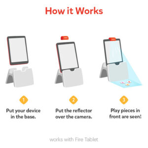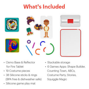 O produto de entrada pré-escolar no universo Osmo, o kit inicial Little Genius para FIre Tablet + Early Math Adventure inclui tudo o que seu filho precisa experimentar: aprendizado prático e diversão digital de seis maneiras diferentes em 6 jogos. Sabemos que as crianças aprendem fazendo, então cada jogo usa ação física. Envolva crianças em idade pré-escolar em assuntos centrais e desperte a imaginação (Counting Town, Shape Builder, ABCs, Squiggle Magic, Costume Party & Stories). De formas a contagem, de pré-leitura a habilidades de resolução de problemas, esses jogos inspirarão uma nova geração de alunos ativos. Use Sticks & Rings para 4 jogos criativos: preencha uma mansão mágica com móveis e coisas incríveis que você cria explorando formas e cores (Shape Builder)! Pratique a contagem enquanto constrói números, criando uma cidade de edifícios e animais amigáveis (Counting Town). Aprenda formação de letras e fonética com mais de 300 palavras (ABCs), crie imagens em 5 playgrounds e veja elas ganharem vida na tela (Squiggle Magic). Use Costume Pieces para 2 jogos divertidos: experimente roupas e cores para fazer roupas de festa, veja personagens reagirem (Costume Party), resolva histórias criativas e encontre soluções bobas para obstáculos e navegue em aventuras (Histórias). Permita que uma criança explore sozinha ou com a participação dos pais. Os jogos Osmo dão vida à imaginação criativa de uma criança com peças portáteis que interagem com um tablet Fire e uma base Osmo (não é necessário WiFi para jogar). O kit inicial Little Genius para tablet Fire vem com uma base de tablet Osmo Fire. Aprovado por pais e professores em todo o mundo, usado em mais de 31.000 salas de aula.