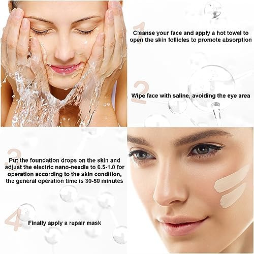 • Como usar: 1, limpe a pele facial para manter a seca 2, com uma toalha que quente compressa por 5 a 10 minutos para abrir os folículos capilares para promover a absorção 3, com a face líquida salina 4 ? soltar a base na face e usar o microneedle para operar