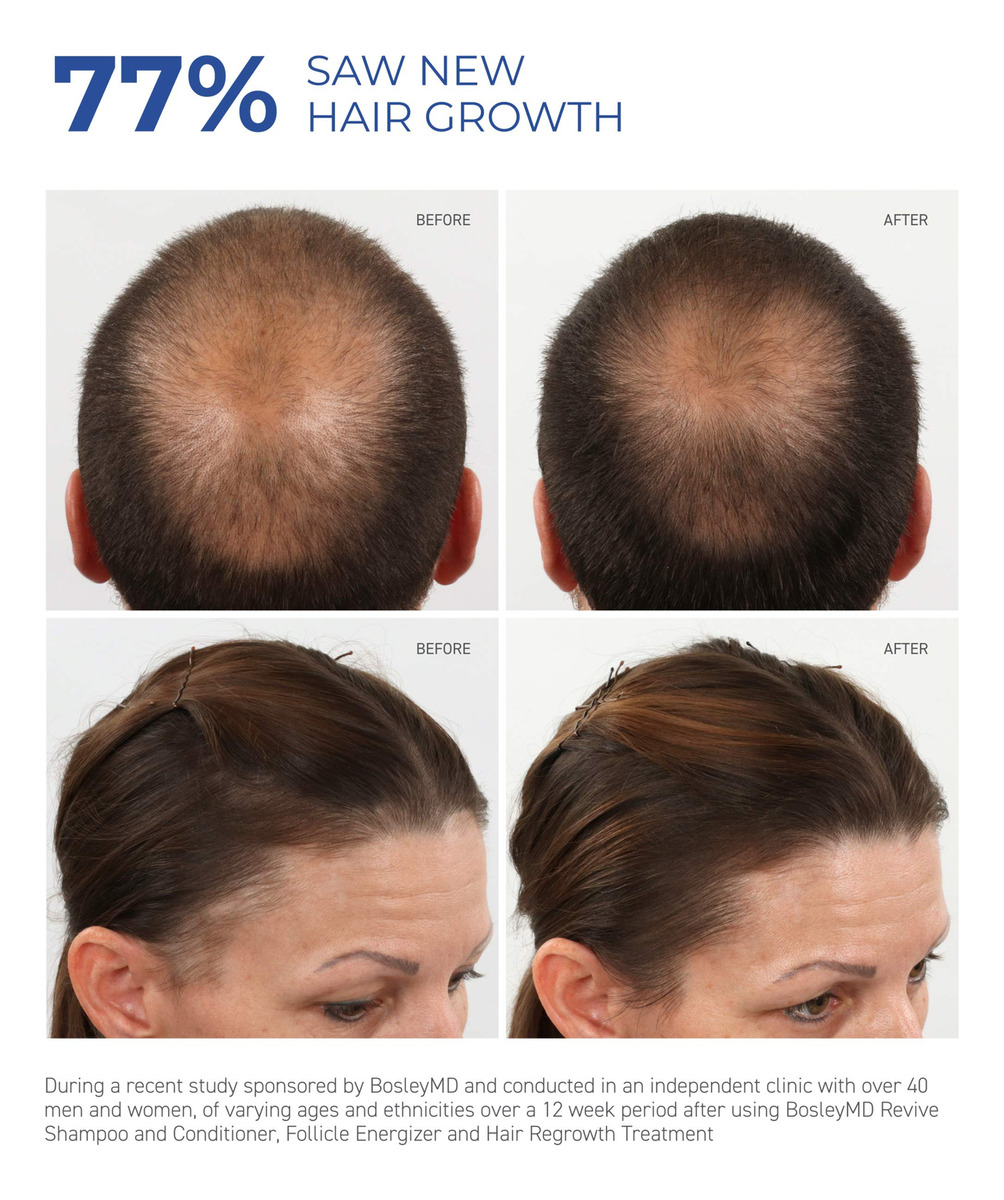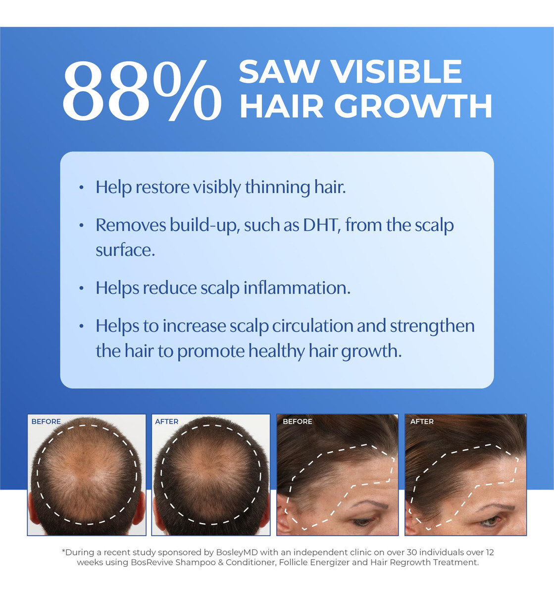 KIT BosleyMD BosRevive para queda de cabelo visível (sem tratamento de cor), tamanho inicial (30 dias) — o complexo LifeExtend hidrata e nutre enquanto fortalece e fortalece os folículos e a haste capilar para um cabelo mais espesso e cheio. Limpeza suave e segura sem ingredientes nocivos. – Promove o crescimento saudável do cabelo – Vegano, sem sulfato, sem parabenos e sem ftalatos – Todos os produtos Bosley Pro são recomendados pelo médico da Bosley Inc. – Sem testes em animais
