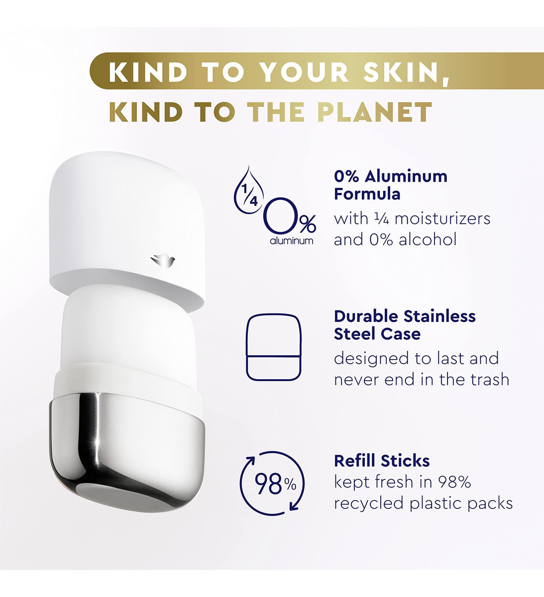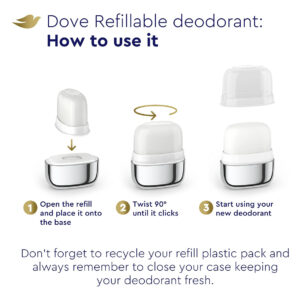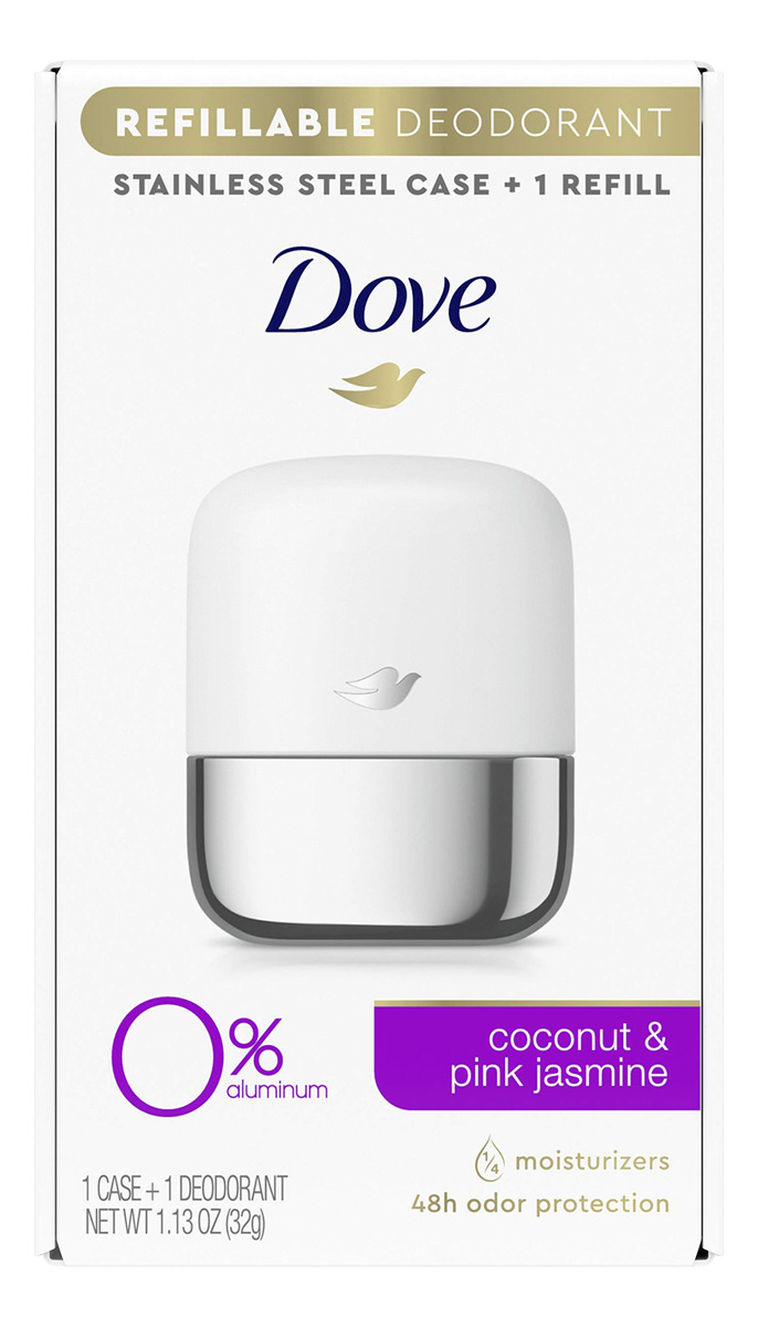 Kit inicial de desodorante recarregável Dove 0% alumínio, coco e jasmim rosa, 1,13 onças – A Dove orgulhosamente apresenta seu primeiro desodorante recarregável sem alumínio – Embalado em um estojo de aço inoxidável, reutilizável e desodorante – Este desodorante cuidadoso contém 1/4 de hidratante para uma pele macia e macia – Gentil com a pele, álcool e desodorante Fórmula em bastão — Oferece 48 horas de proteção desodorante contra odores