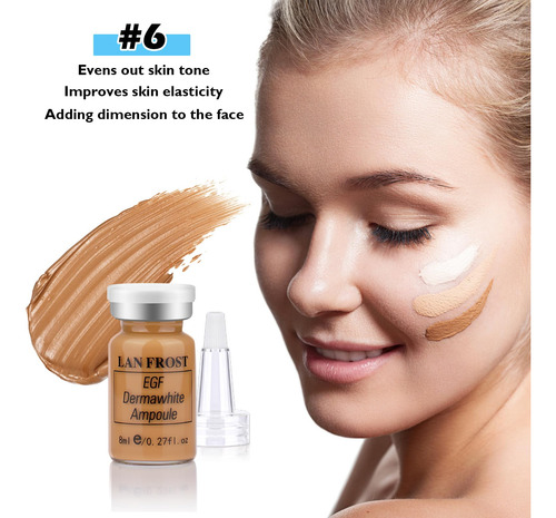 O pacote inclui: caixa colorida x 1 BB Facial Glow Cor #6: cor escura x 12 conta-gotas x 2 Os números de cores incluem: – BB Facial Glow, adicione base líquida, combinada com niacinamida e peptídeo, uniformize o tom da pele, iluminando efetivamente o tom da pele e antienvelhecimento. – Kit inicial Pigment Serum Foundation Skin Treatment Kit Anti-Aging Skin Care 0,17 onças 10 frascos para spa facial profissional