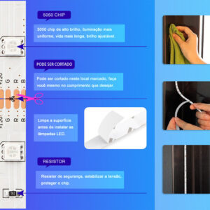 Esta tira de luz é modelo 5050, que não é à prova dágua, portanto não há silicone na superfície da tira de luz.