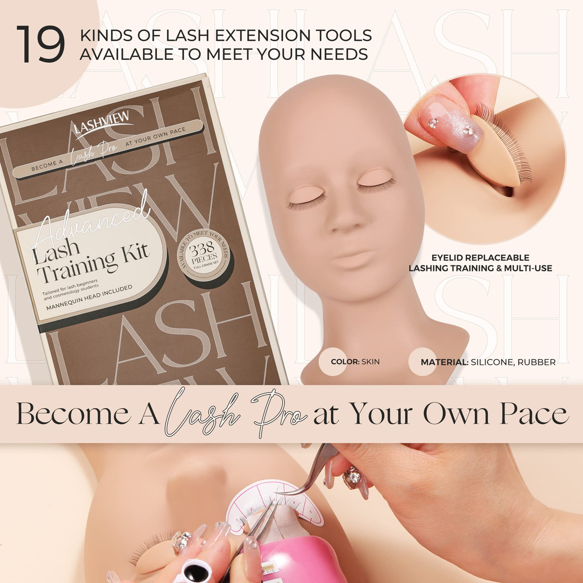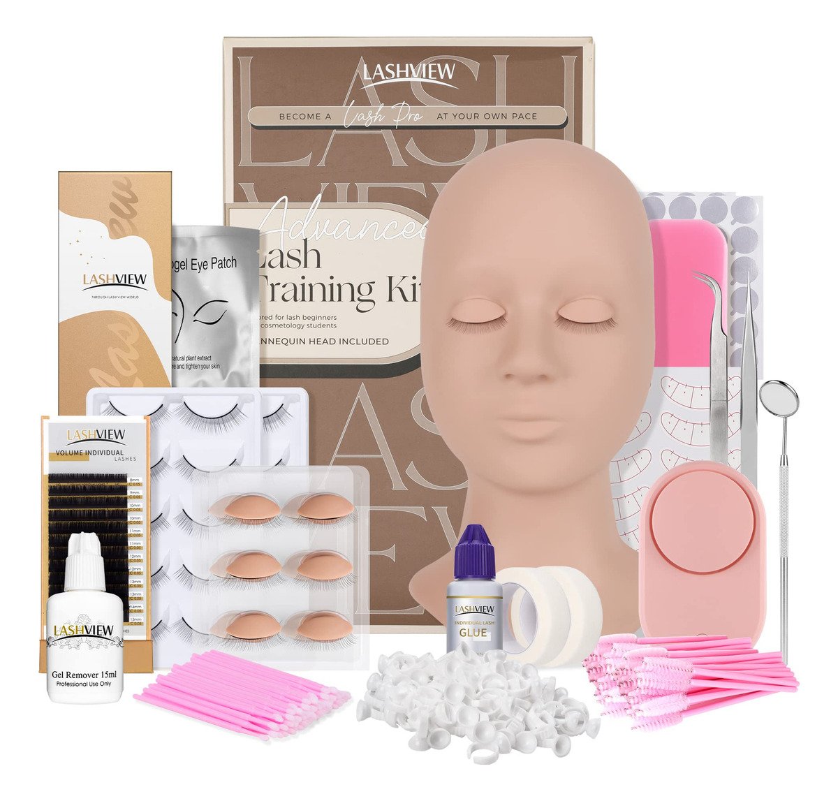 Kit prático de extensão de cílios LASHVIEW 338 unidades Cabeça de manequim com 7 pares de pálpebras substituídas O conjunto de treinamento de silicone inclui miniventilador, maquiagem, cor natural da pele -: cabeça de manequim com um par de olhos removíveis *1, extensões de cílios *2, olhos de treino extra removíveis * 6 pares, pinças de isolamento *1, pinças de aplicação *1, anéis de cola* 100 unidades, adesivos de cola 60 unidades, adesivo de mapeamento de cílios * 14 pares, pincel de rímel * 25, pincel microaplicador * 100, cílios práticos * 10 pares, almofadas sob os olhos * 10, removedor de gel * 1, cola individual para cílios * 1, fita adesiva para cílios * 2, secador de cílios * 1, Adesivo de silicone para testa *1, Lash Mirror *1 -: Este kit de cílios inclui tudo o que você precisa para praticar extensões de cílios clássicas e volumosas. Com 338 ferramentas, ele atende às suas necessidades em constante evolução. A cola seca em 3-5 segundos, ideal para iniciantes. O kit de prática de cílios também inclui dois tipos de extensões de cílios para estilos diferentes. -: A cabeça do manequim LASHVIEW apresenta uma superfície lisa semelhante à pele humana. Ele vem com 7 pares de olhos de treino removíveis, o que o torna adequado para a prática de maquiagem e massagem. Pode ser facilmente limpo com óleo removedor de maquiagem ou azeite de oliva. – -: Nosso ventilador elétrico de cílios libera suas mãos. Com um design DIY Emoji, oferece 3 velocidades, operação silenciosa e uma função de carregamento. Esse ventilador conveniente reduz o incômodo e economiza tempo, proporcionando uma experiência rápida e fácil. -: Para provar o quanto estamos confiantes em nosso produto, oferecemos uma garantia vitalícia de devolução do dinheiro em cada compra! Se você não estiver totalmente satisfeito com este produto, reembolsaremos sua compra sem exceções! Clique no botão Adicionar ao carrinho agora!