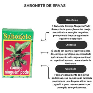O sabonete “Comigo Ninguém Pode” cria uma barreira protetora, afastando influências externas nocivas e fortalecendo o campo energético pessoal.