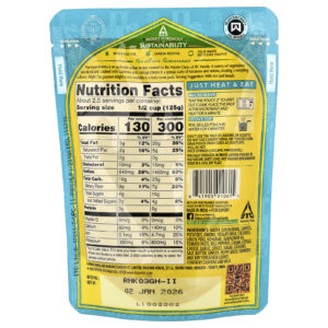 Micro-ondas: Abra a embalagem 2″ para aliviar o vapor. Coloque o pacote no micro-ondas e aqueça por um minuto.