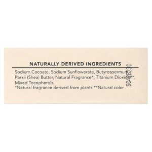 Cocoato de sódio, girassol de sódio, manteiga de Butyrospermum parkii (karité), fragrância natural*, dióxido de titânio**, tocoferóis mistos.