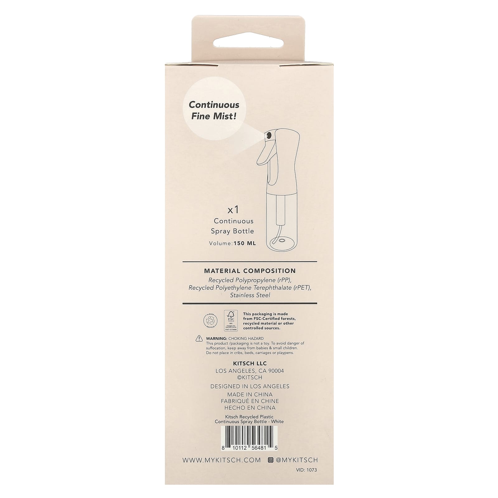 Kitsch Frasco com Spray Contínuo Branco 1 Unidade 150 ml – Kitsch Cuidados Pessoais Banho Acessórios para Banho.