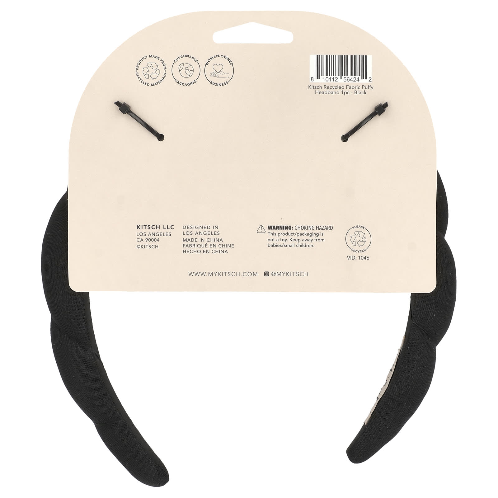 Kitsch Tiara Inchado de Tecido Reciclado Preto 1 Unidade – Kitsch Cuidados Pessoais Cabelos Acessórios para Cabelo.