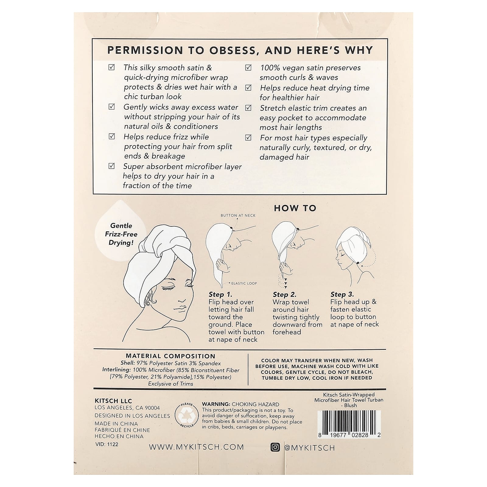 Kitsch Toalha Capilar de Microfibra Envolvida em Cetim Blush 1 Toalha – Kitsch Banho e Cuidados Pessoais Banho Acessórios para Banho.