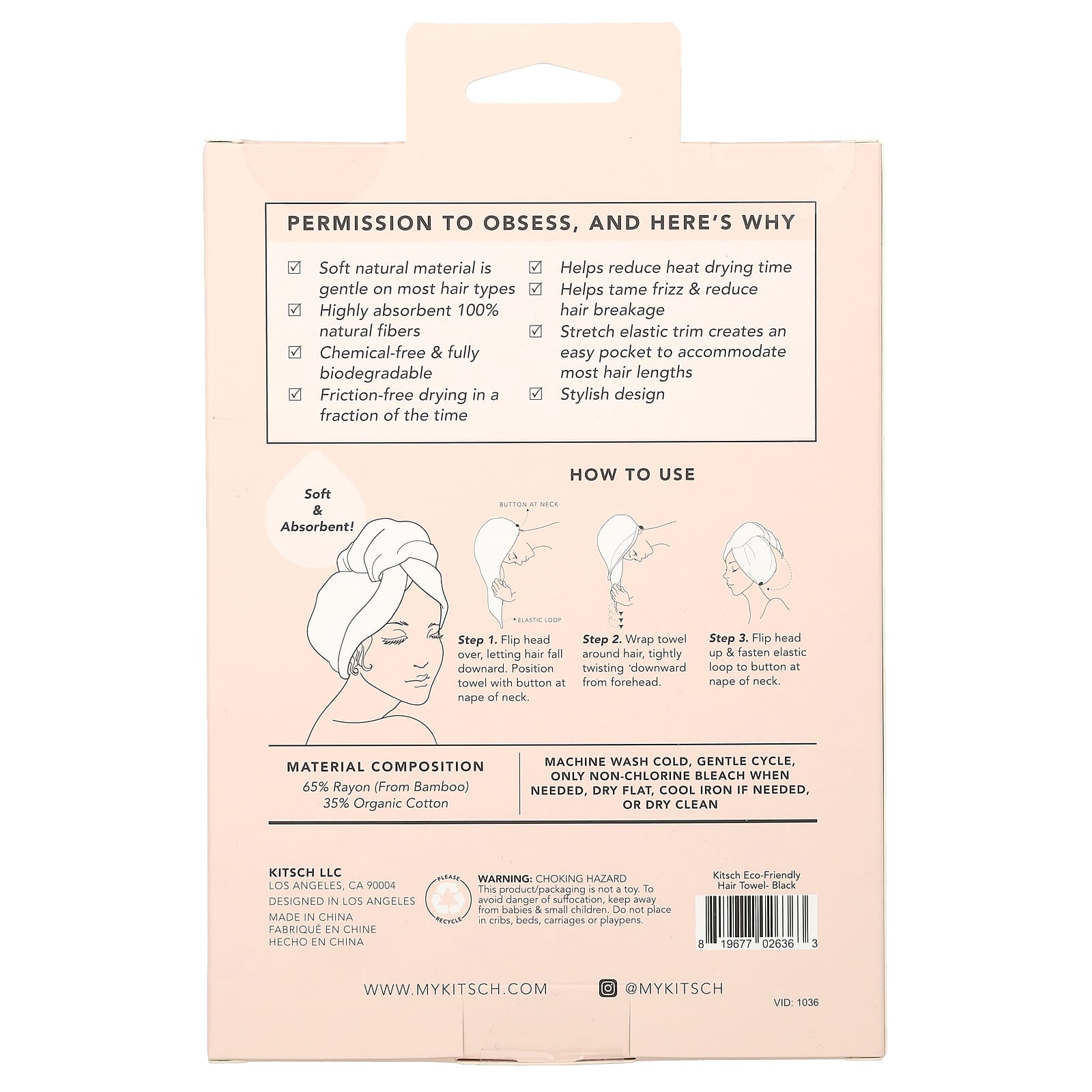 Kitsch Toalha de Cabelo Ecológica Preta 1 Unidade – Kitsch Banho e Cuidados Pessoais Cabelos Acessórios para Cabelo.
