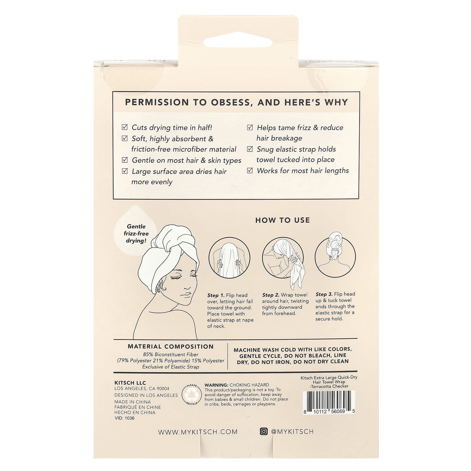 Kitsch Toalha para Cabelos de Secagem Rápida Extragrande Verificador de Terracota 1 Unidade – Kitsch Cuidados Pessoais Cabelos Acessórios para Cabelo.